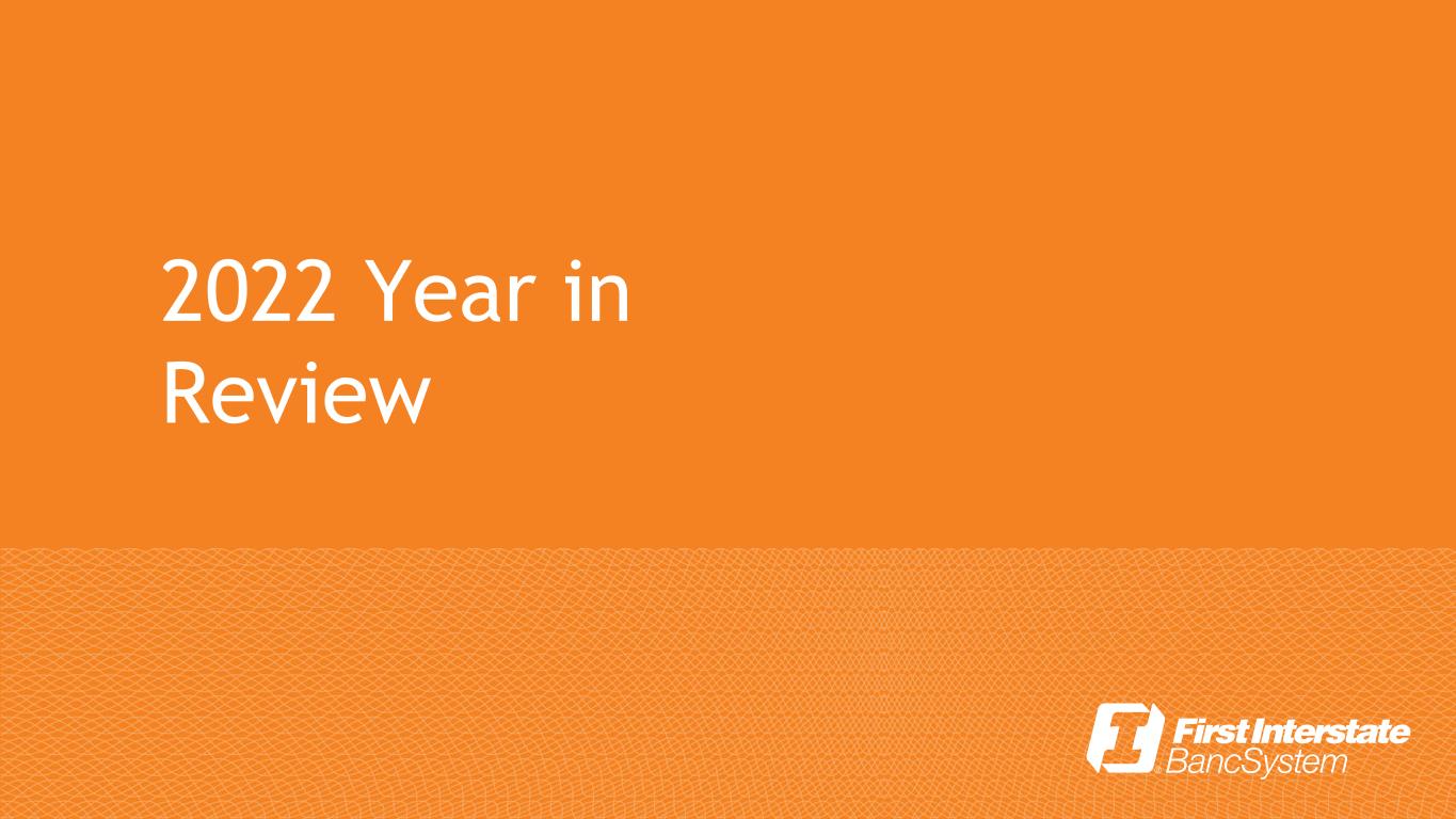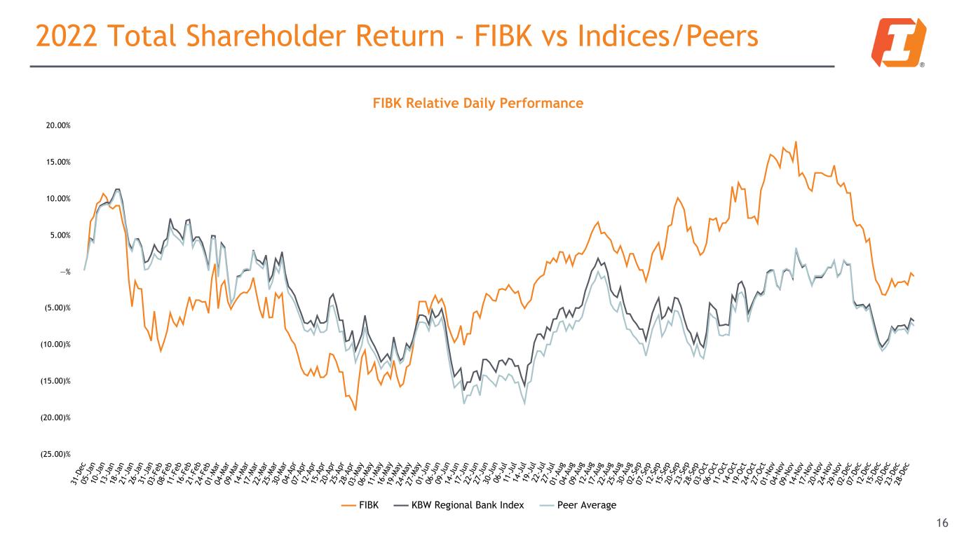 FIBK Relative Daily Performance FIBK KBW Regional Bank Index Peer Average 31 -D ec 05 -J an 10 -J an 13 -J an 18 -J an 21 -J an 26 -J an 31 -J an 03 -F eb 08 -F eb 11 -F eb 16 -F eb 21 -F eb 24 -F eb 01 -M ar 04 -M ar 09 -M ar 14 -M ar 17 -M ar 22 -M ar 25 -M ar 30 -M ar 04 -A pr 07 -A pr 12 -A pr 15 -A pr 20 -A pr 25 -A pr 28 -A pr 03 -M ay 06 -M ay 11 -M ay 16 -M ay 19 -M ay 24 -M ay 27 -M ay 01 -J un 06 -J un 09 -J un 14 -J un 17 -J un 22 -J un 27 -J un 30 -J un 06 -J ul 11 -J ul 14 -J ul 19 -J ul 22 -J ul 27 -J ul 01 -A ug 04 -A ug 09 -A ug 12 -A ug 17 -A ug 22 -A ug 25 -A ug 30 -A ug 02 -S ep 07 -S ep 12 -S ep 15 -S ep 20 -S ep 23 -S ep 28 -S ep 03 -O ct 06 -O ct 11 -O ct 14 -O ct 19 -O ct 24 -O ct 27 -O ct 01 -N ov 04 -N ov 09 -N ov 14 -N ov 17 -N ov 20 -N ov 24 -N ov 29 -N ov 02 -D ec 07 -D ec 12 -D ec 15 -D ec 20 -D ec 23 -D ec 28 -D ec (25.00)% (20.00)% (15.00)% (10.00)% (5.00)% —% 5.00% 10.00% 15.00% 20.00% 2022 Total Shareholder Return - FIBK vs Indices/Peers 16