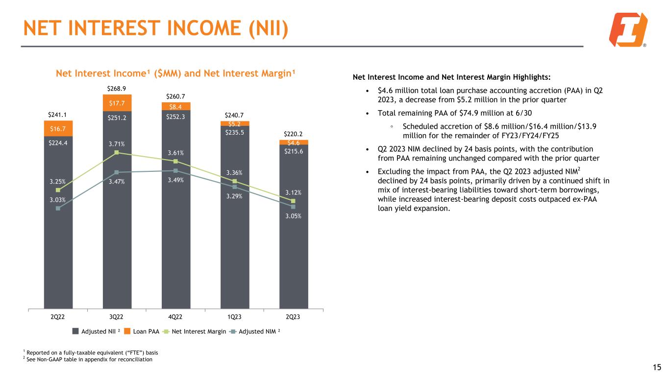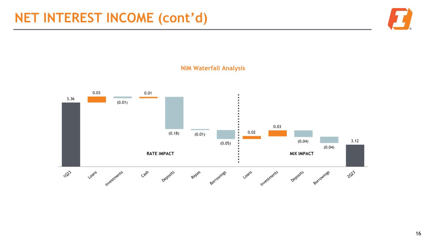 NET INTEREST INCOME (NII) Net Interest Income¹ ($MM) and Net Interest Margin¹ $241.1 $268.9 $260.7 $240.7 $220.2 $224.4 $251.2 $252.3 $235.5 $215.6 $16.7 $17.7 $8.4 $5.2 $4.6 3.25% 3.71% 3.61% 3.36% 3.12% 3.03% 3.47% 3.49% 3.29% 3.05% Adjusted NII ² Loan PAA Net Interest Margin Adjusted NIM ² 2Q22 3Q22 4Q22 1Q23 2Q23 15 Net Interest Income and Net Interest Margin Highlights: • $4.6 million total loan purchase accounting accretion (PAA) in Q2 2023, a decrease from $5.2 million in the prior quarter • Total remaining PAA of $74.9 million at 6/30 ◦ Scheduled accretion of $8.6 million/$16.4 million/$13.9 million for the remainder of FY23/FY24/FY25 • Q2 2023 NIM declined by 24 basis points, with the contribution from PAA remaining unchanged compared with the prior quarter • Excluding the impact from PAA, the Q2 2023 adjusted NIM2 declined by 24 basis points, primarily driven by a continued shift in mix of interest-bearing liabilities toward short-term borrowings, while increased interest-bearing deposit costs outpaced ex-PAA loan yield expansion. 1 Reported on a fully-taxable equivalent (“FTE”) basis 2 See Non-GAAP table in appendix for reconciliation
