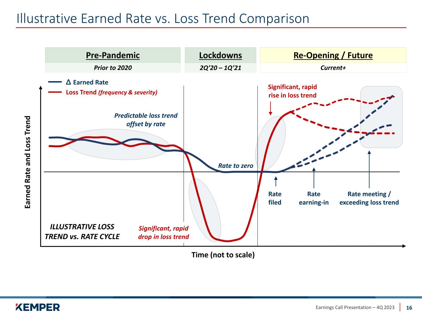 Earnings Call Presentation – 4Q 2023 Significant, rapid drop in loss trend 16 Time (not to scale) Ea rn e d R at e a n d L o ss T re n d Δ Earned Rate Loss Trend (frequency & severity) Pre-Pandemic Lockdowns Re-Opening / Future Rate filed Rate to zero Predictable loss trend offset by rate Significant, rapid rise in loss trend Prior to 2020 2Q’20 – 1Q’21 Current+ Rate earning-in ILLUSTRATIVE LOSS TREND vs. RATE CYCLE Rate meeting / exceeding loss trend Illustrative Earned Rate vs. Loss Trend Comparison