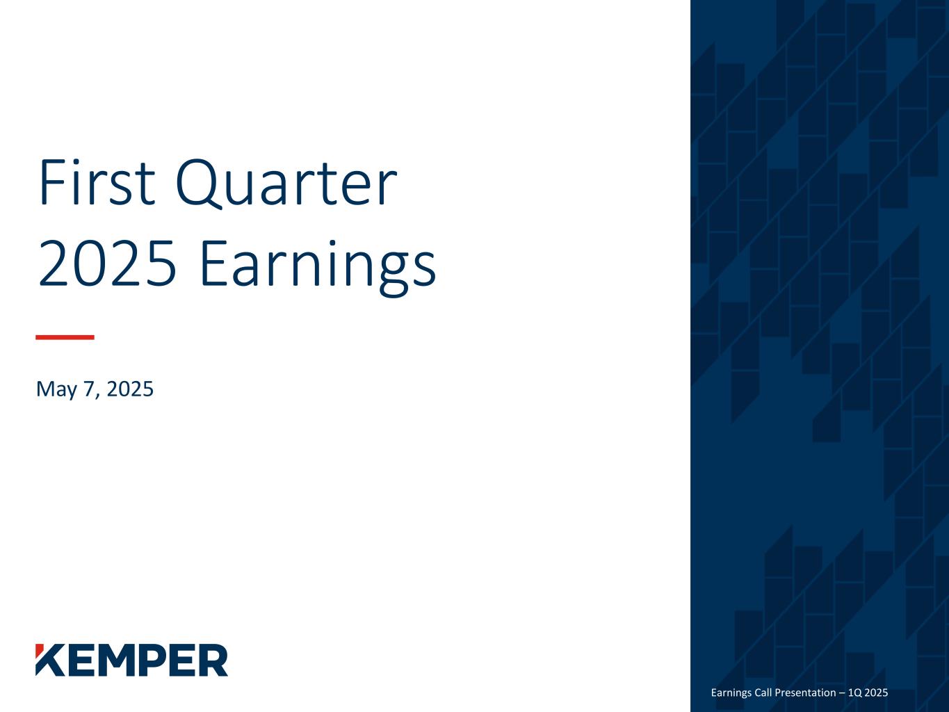 Earnings Call Presentation – 1Q 2025 Preliminary Matters 2 Cautionary Statements Regarding Forward-Looking Information This presentation may contain or incorporate by reference information that includes or is based on forward-looking statements within the meaning of the safe-harbor provisions of the Private Securities Litigation Reform Act of 1995. We caution investors that these forward-looking statements are not guarantees of future performance, and actual results may differ materially. Such statements involve known and unknown risks, uncertainties, and other factors, including but not limited to: • changes in the frequency and severity of insurance claims; • claim development and the process of estimating claim reserves; • the impacts of inflation; • changes in interest rate environment; • supply chain disruption; • product demand and pricing; • effects of governmental and regulatory actions; • litigation outcomes and trends; • investment risks; • cybersecurity risks or incidents; • impact of catastrophes; and • other risks and uncertainties detailed in Kemper’s Annual Report on Form 10-K and subsequent filings with the Securities and Exchange Commission (“SEC”). Kemper assumes no obligation to publicly correct or update any forward-looking statements as a result of events or developments subsequent to the date of this presentation. Non-GAAP Financial Measures This presentation contains non-GAAP financial measures that the company believes are meaningful to investors. Non-GAAP financial measures have been reconciled to the most comparable GAAP financial measure.
