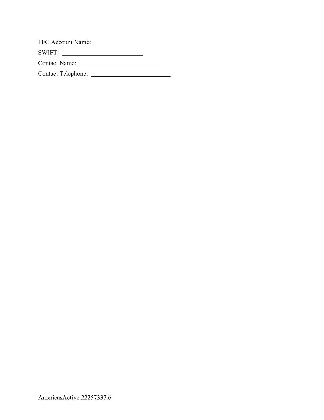 AmericasActive:22257337.6 FFC Account Name: SWIFT: Contact Name: Contact Telephone: