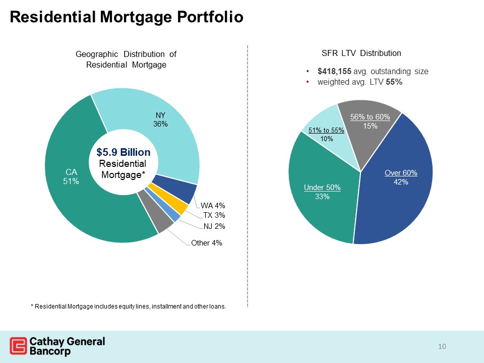 Selected CRE and Construction Loan Portfolios (cont’d)  9  weighted avg. LTV 48%  Central Business District (CBD) – Central Business/Financial Centers (mainly city downtowns)  Urban – City and metropolitan areas  Suburban – Outside of the city/metropolitan area