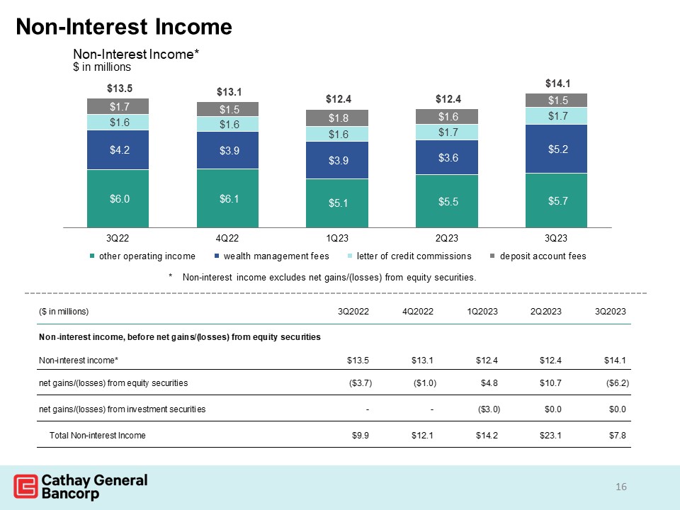 Non-Interest Income  16  $ in millions  Non-Interest Income*  * Non-interest income excludes net gains/(losses) from equity securities.