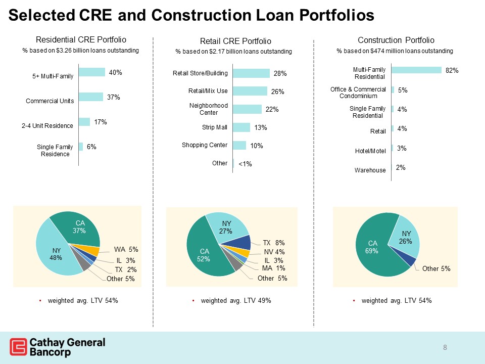 Selected CRE and Construction Loan Portfolios  weighted avg. LTV 54%  weighted avg. LTV 49%  weighted avg. LTV 54%  8