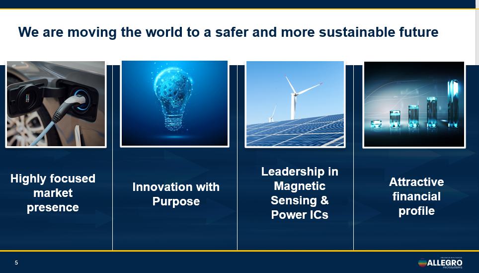 We are moving the world to a safer and more sustainable future Leadership in Magnetic Sensing & Power ICs Innovation with P urpose Attractive financial profile Highly focused market presence New image 5