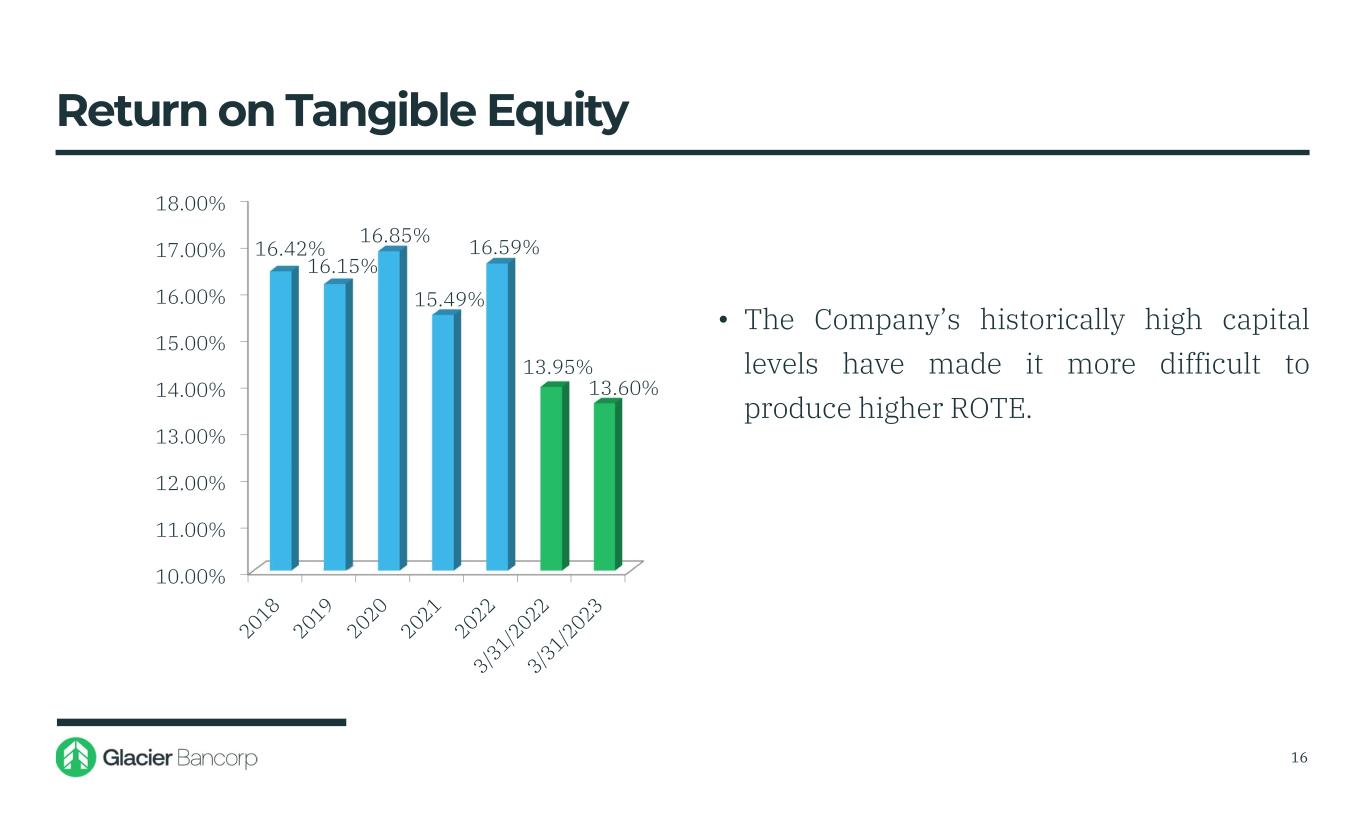 0.90% 1.00% 1.10% 1.20% 1.30% 1.40% 1.50% 1.60% 1.70% 1.64% 1.59% 1.62% 1.73% 1.06% 0.93% • ROA in the fourth quarter of 2022 was in the 47th♦ percentile among Glacier’s peer group Return on Assets ♦BHCPR as of 12/31/2022 1.33% 15