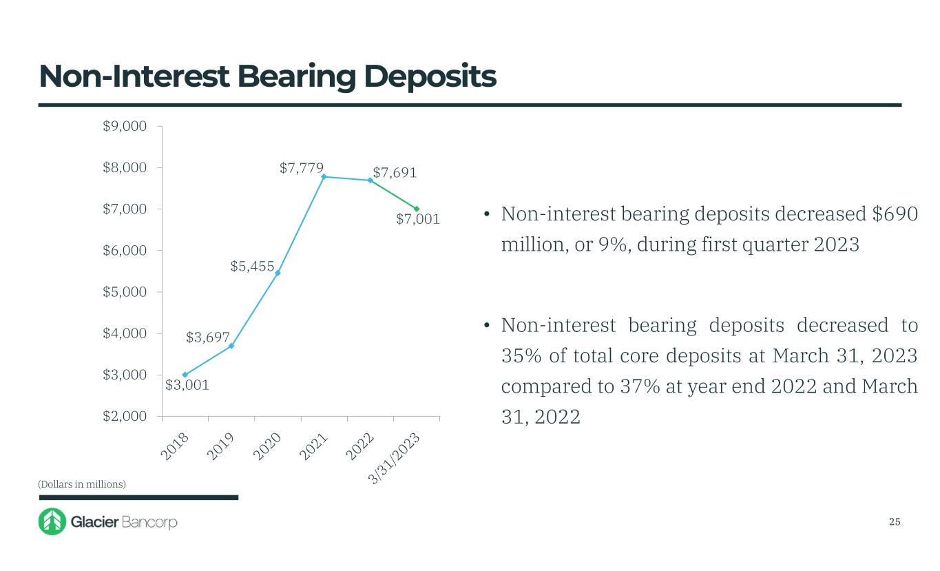 Non- Interest Bearing 37% NOW and DDA 25% Savings 15% MMDA 19% CDs 4% Wholesale 0% 3/31/2022 Non- Interest Bearing 35% NOW and DDA 25% Savings 15% MMDA 17% CDs 6% Wholesale 2% 3/31/2023 Deposit Composition 24
