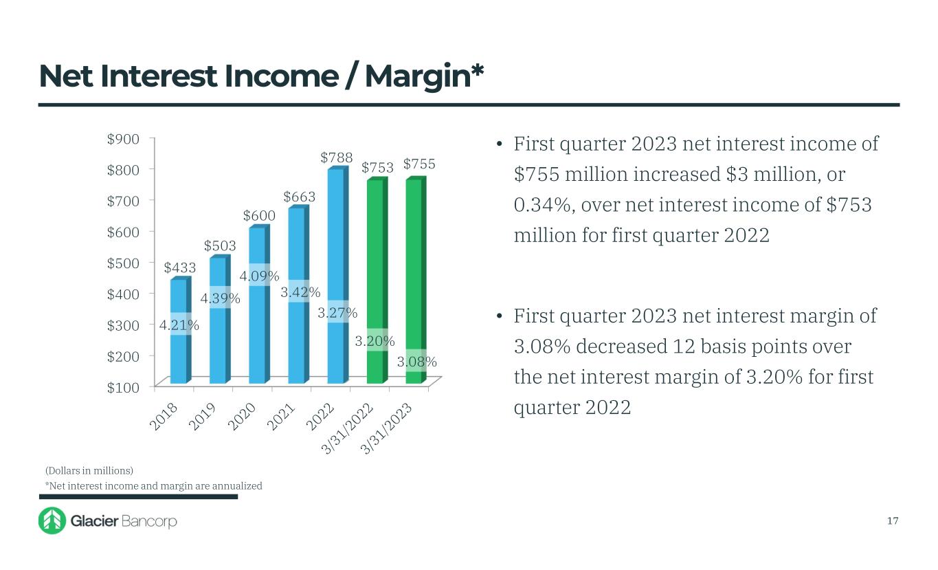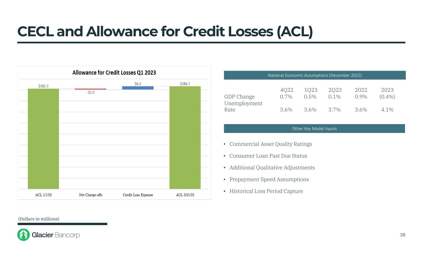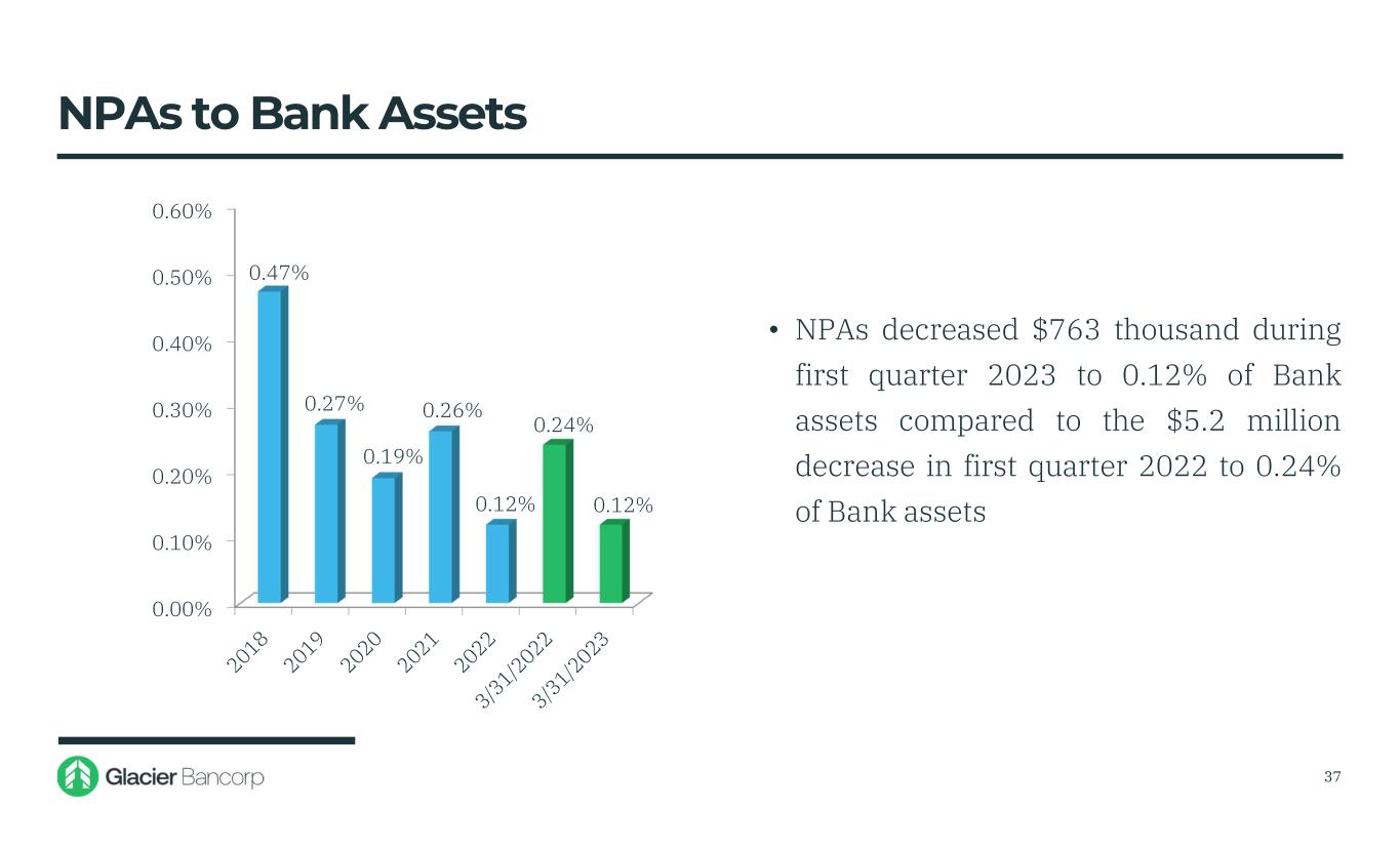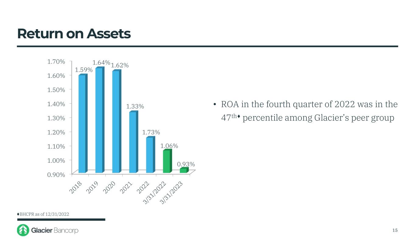 Glacier Bancorp, Inc. 3/31/2023 Snapshot Ticker GBCI Total Assets $27.80 billion Gross Loans $15.52 billion Deposits $20.15 billion TCBV Per Share $17.16 Dividends $0.33 Stock Price $42.01 Market Cap $4.66 billion 3