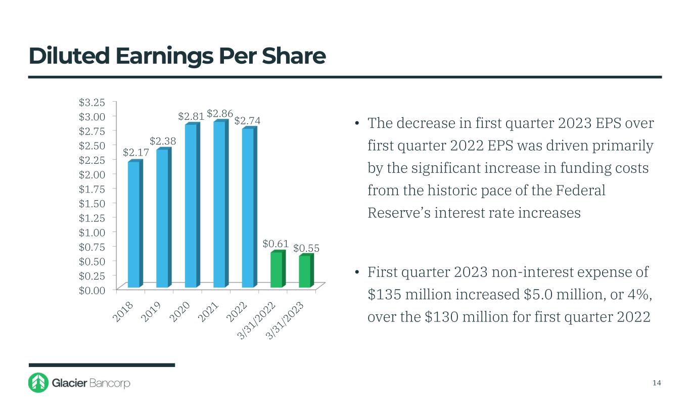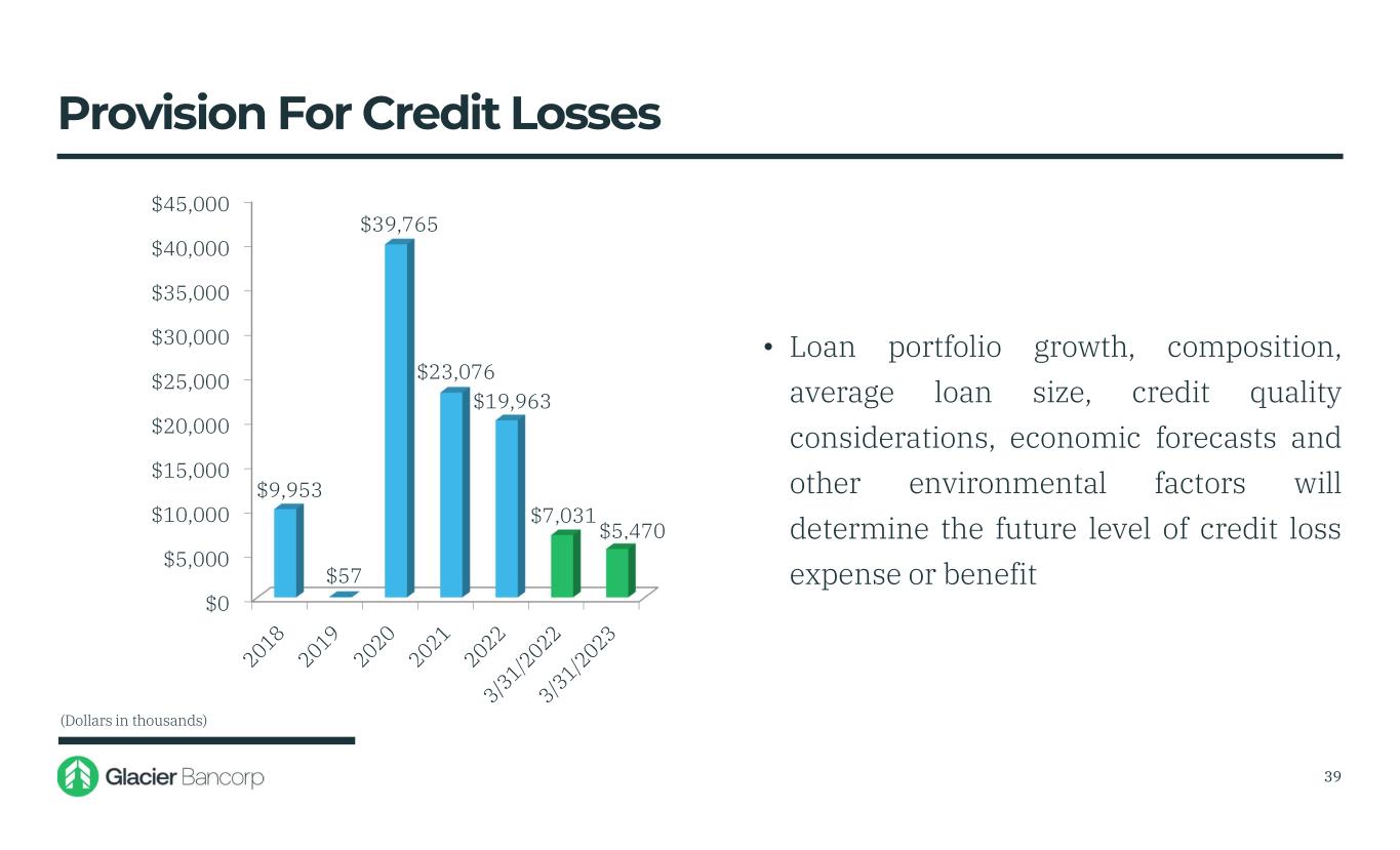 Forward-Looking Statements This presentation contains forward-looking statements within the meaning of the Private Securities Litigation Reform Act of 1995. These forward-looking statements include, but are not limited to, statements about the Company’s plans, objectives, expectations and intentions that are not historical facts, and other statements identified by words such as “expects,” “anticipates,” “intends,” “plans,” “believes,” “should,” “projects,” “seeks,” “estimates” or other comparable words or phrases of a future or forward-looking nature. These forward-looking statements are based on current beliefs and expectations of management and are inherently subject to significant business, economic and competitive uncertainties and contingencies, many of which are beyond the Company’s control. In addition, these forward-looking statements are subject to assumptions that are subject to change. The following factors, among others, could cause actual results to differ materially from the anticipated results (express or implied) or other expectations in the forward-looking statements: 1) Risks associated with lending and potential adverse changes in the credit quality of the Company’s loan portfolio; 2) Changes in monetary and fiscal policies, including interest rate policies of the Federal Reserve Board, which could adversely affect the Company’s net interest income and margin, the fair value of its financial instruments, profitability, and stockholders’ equity; 3) Legislative or regulatory changes, including increased banking and consumer protection regulations, that may adversely affect the Company’s business; 4) Risks related to overall economic conditions, including the impact on the economy of a rising interest rate environment, inflationary pressures, and geopolitical instability, including the war in Ukraine; 5) Risks associated with the Company’s ability to negotiate, complete, and successfully integrate any future acquisitions; 6) Costs or difficulties related to the completion and integration of acquisitions; 7) Impairment of the goodwill recorded by the Company in connection with acquisitions, which may have an adverse impact on earnings and capital; 8) Reduction in demand for banking products and services, whether as a result of changes in customer behavior, economic conditions, banking environment, or competition; 9) Deterioration of the reputation of banks and the financial services industry, which could adversely affect the Company's ability to obtain and maintain customers; 10) Changes in the competitive landscape, including as may result from new market entrants or further consolidation in the financial services industry, resulting in the creation of larger competitors with greater financial resources; 11) Risks presented by continued public stock market volatility, which could adversely affect the market price of the Company’s common stock and the ability to raise additional capital or grow through acquisitions; 12) Risks associated with dependence on the Chief Executive Officer, the senior management team and the Presidents of Glacier Bank’s divisions; 13) Material failure, potential interruption or breach in security of the Company’s systems or changes in technological which could expose the Company to cybersecurity risks, fraud, system failures, or direct liabilities; 14) Risks related to natural disasters, including droughts, fires, floods, earthquakes, pandemics, and other unexpected events; 15) Success in managing risks involved in the foregoing; and 16) Effects of any reputational damage to the Company resulting from any of the foregoing. 2