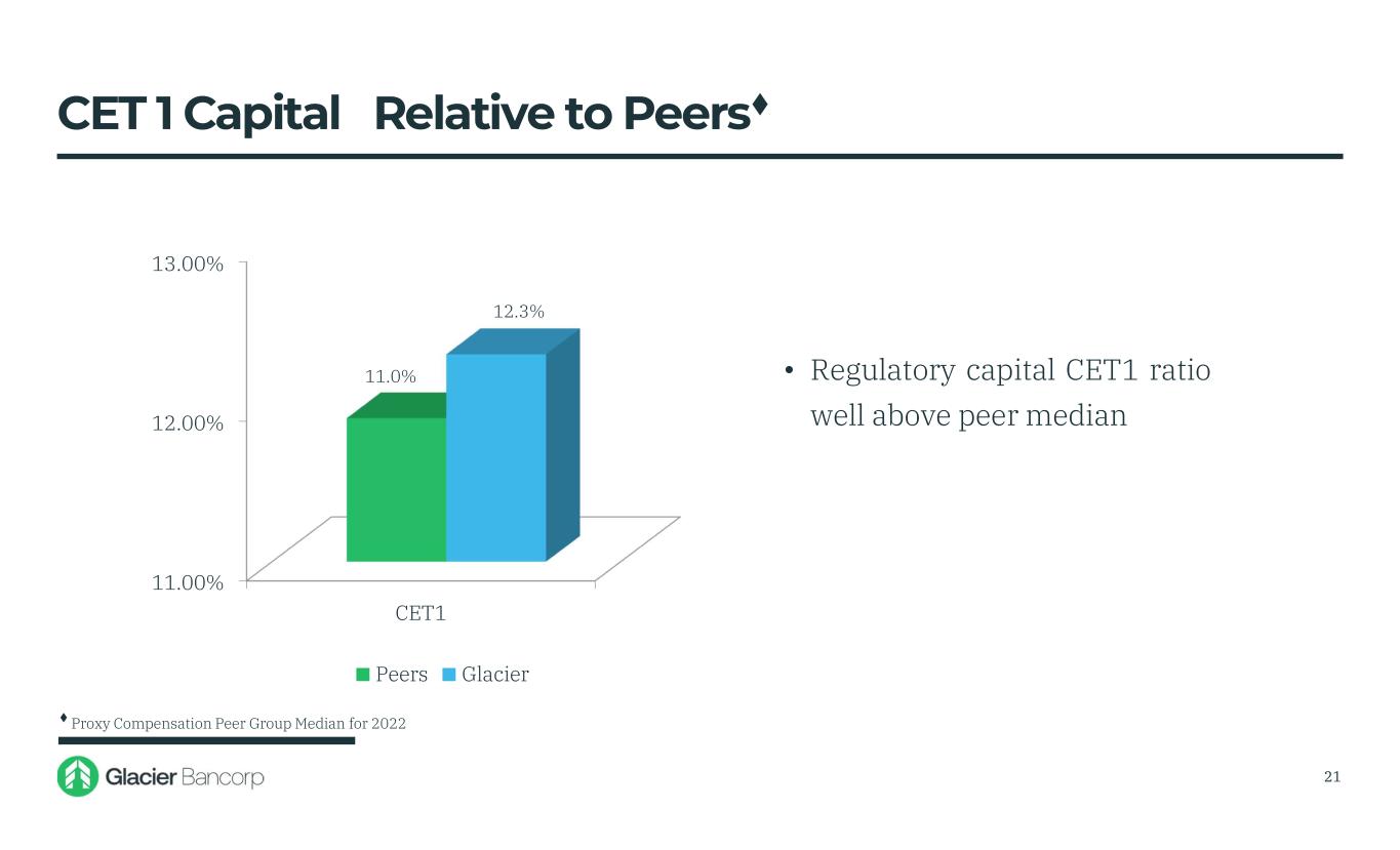 11.00% 12.00% 13.00% CET1 11.0% 12.3% Peers Glacier • Regulatory capital CET1 ratio well above peer median 21 CET 1 Capital Relative to Peers♦ ♦ Proxy Compensation Peer Group Median for 2022