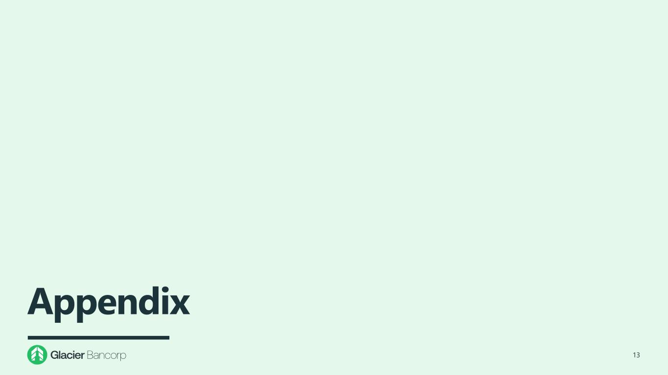 Concluding Observations 12  CFGW acquisition continues Glacier’s tradition of adding the highest quality community banks that fit the Glacier banking model  Eastern Washington is a key growth market in the Glacier footprint and one of the top agricultural markets in the nation  CFGW management and staff provide Glacier with executive and lending talent, deep market knowledge, Ag industry expertise, and strong customer relationships  Pricing metrics, deal structure, and conservative assumptions reflective of Glacier’s consistent, disciplined approach to acquisitions  Transaction will further enhance Glacier’s long-term record of creating shareholder value