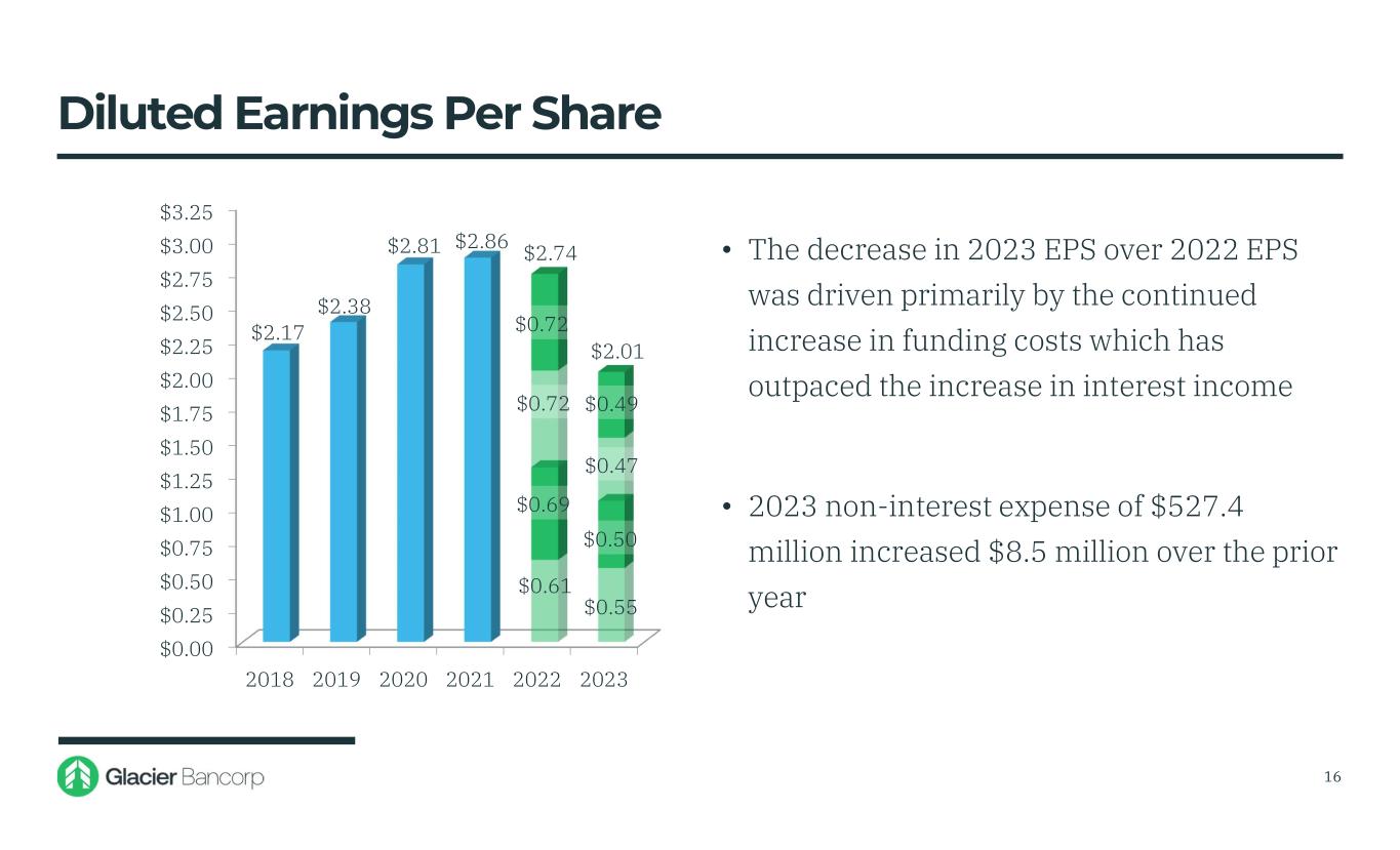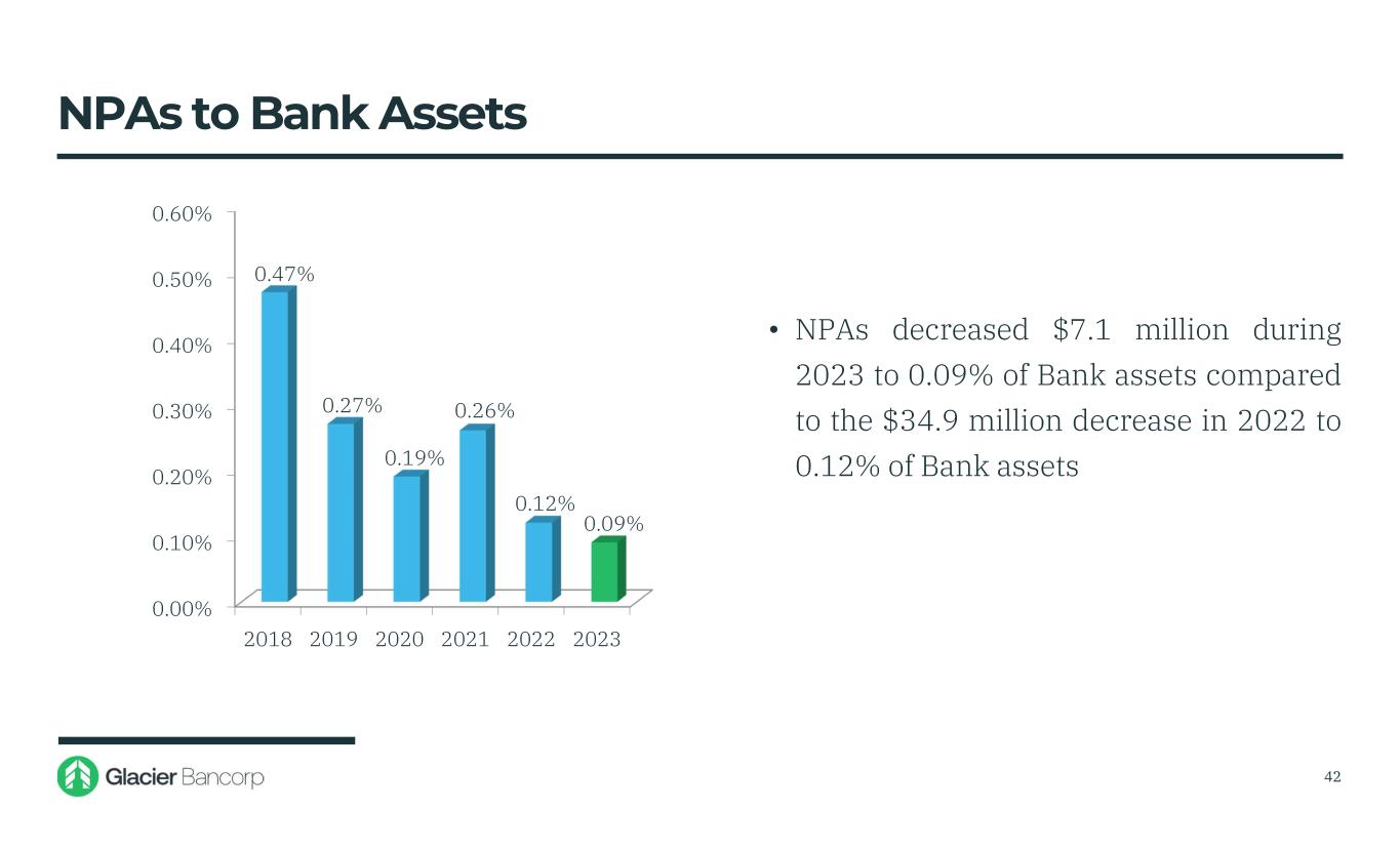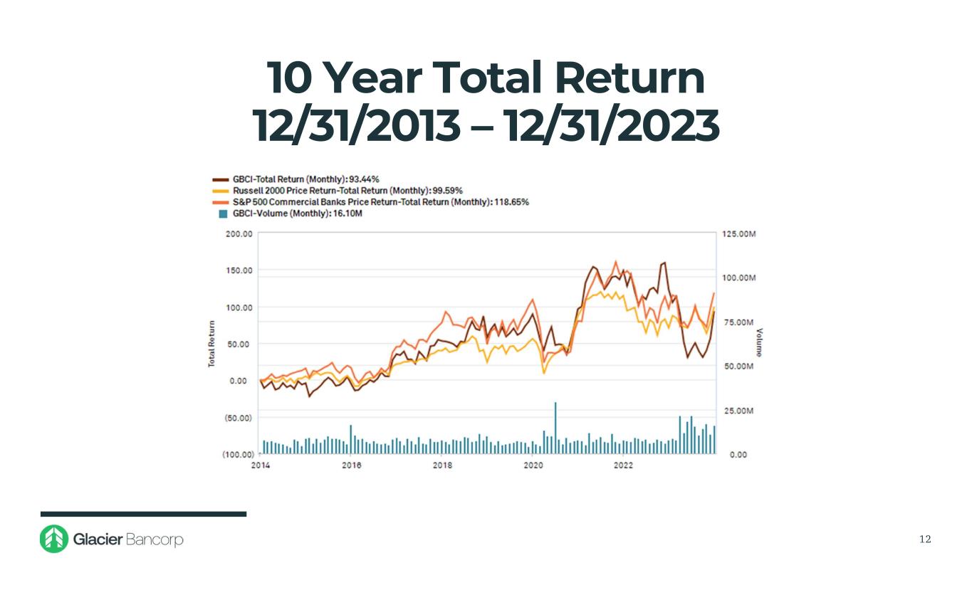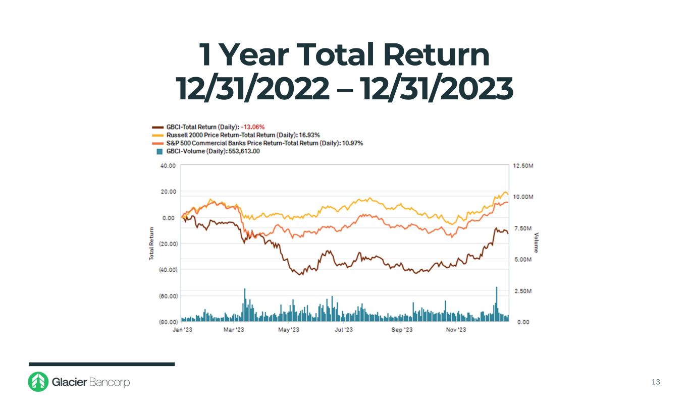 Glacier Bancorp, Inc. 12/31/2023 Snapshot Ticker GBCI Total Assets $27.74 billion Gross Loans $16.20 billion Deposits $19.93 billion TCBV Per Share $18.06 Dividends $1.32 Stock Price $41.32 Market Cap $4.58 billion 3