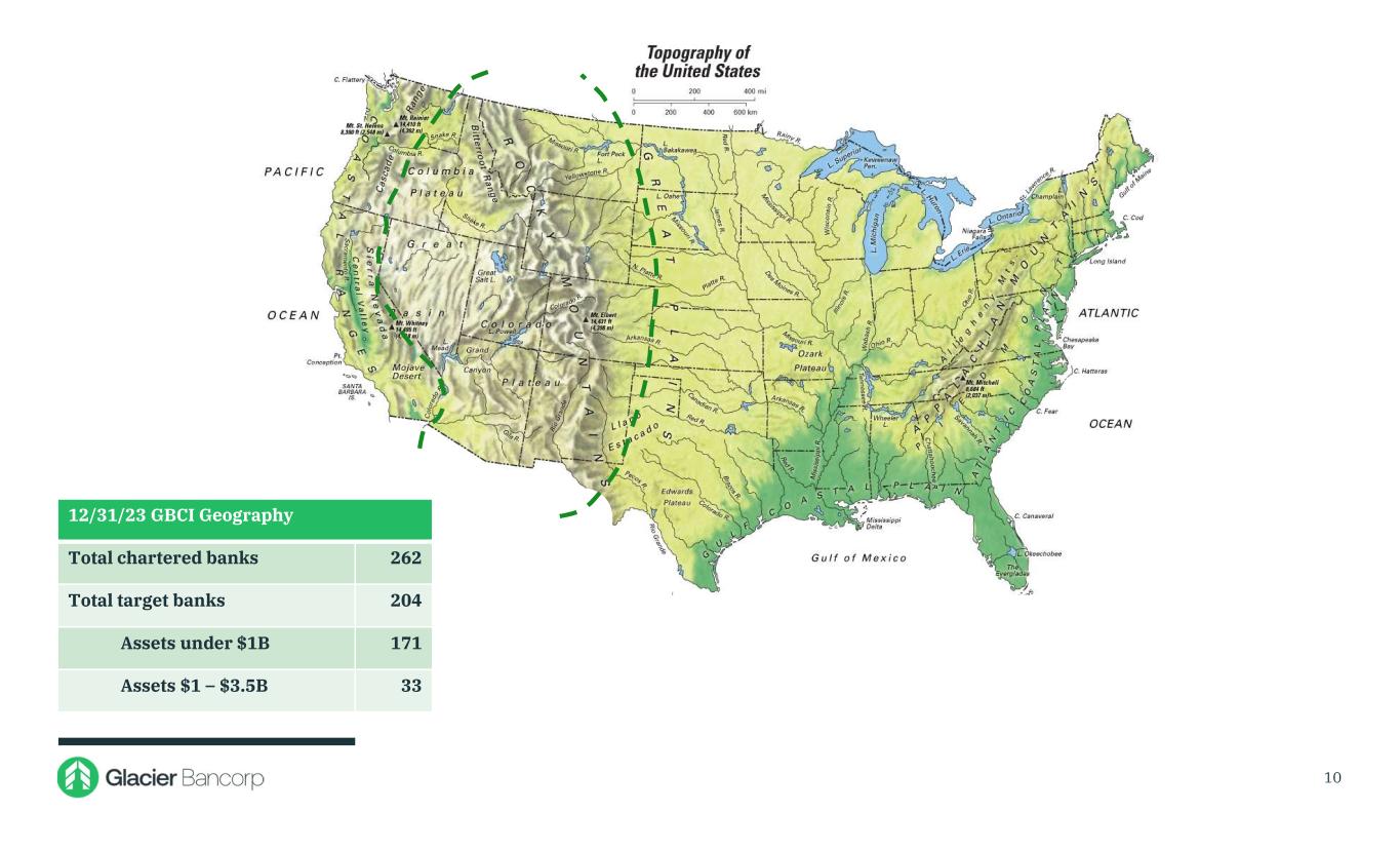 12/31/23 GBCI Geography Total chartered banks 262 Total target banks 204 Assets under $1B 171 Assets $1 – $3.5B 33 10