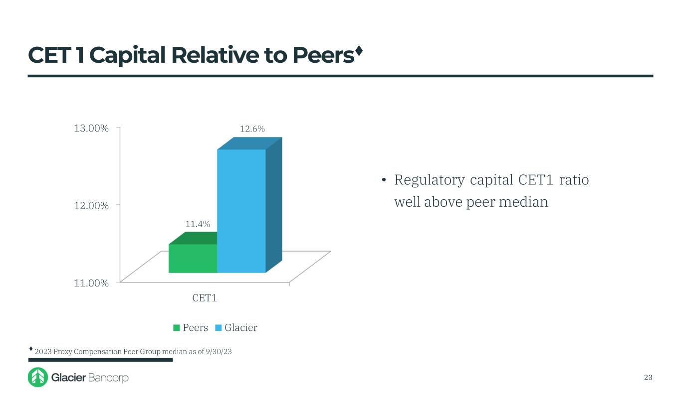 11.00% 12.00% 13.00% CET1 11.4% 12.6% Peers Glacier • Regulatory capital CET1 ratio well above peer median 23 CET 1 Capital Relative to Peers♦ ♦ 2023 Proxy Compensation Peer Group median as of 9/30/23