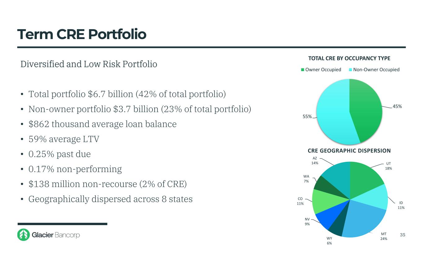 Montana 62% Idaho 22% Utah 2% Washington 1% Wyoming 9% Colorado 4% 12/31/2009 Montana 35% Idaho 13%Utah 16% Washington 5% Wyoming 8% Colorado 9% Arizona 9% Nevada 5% 12/31/2023 34 Geographic Loan Dispersion