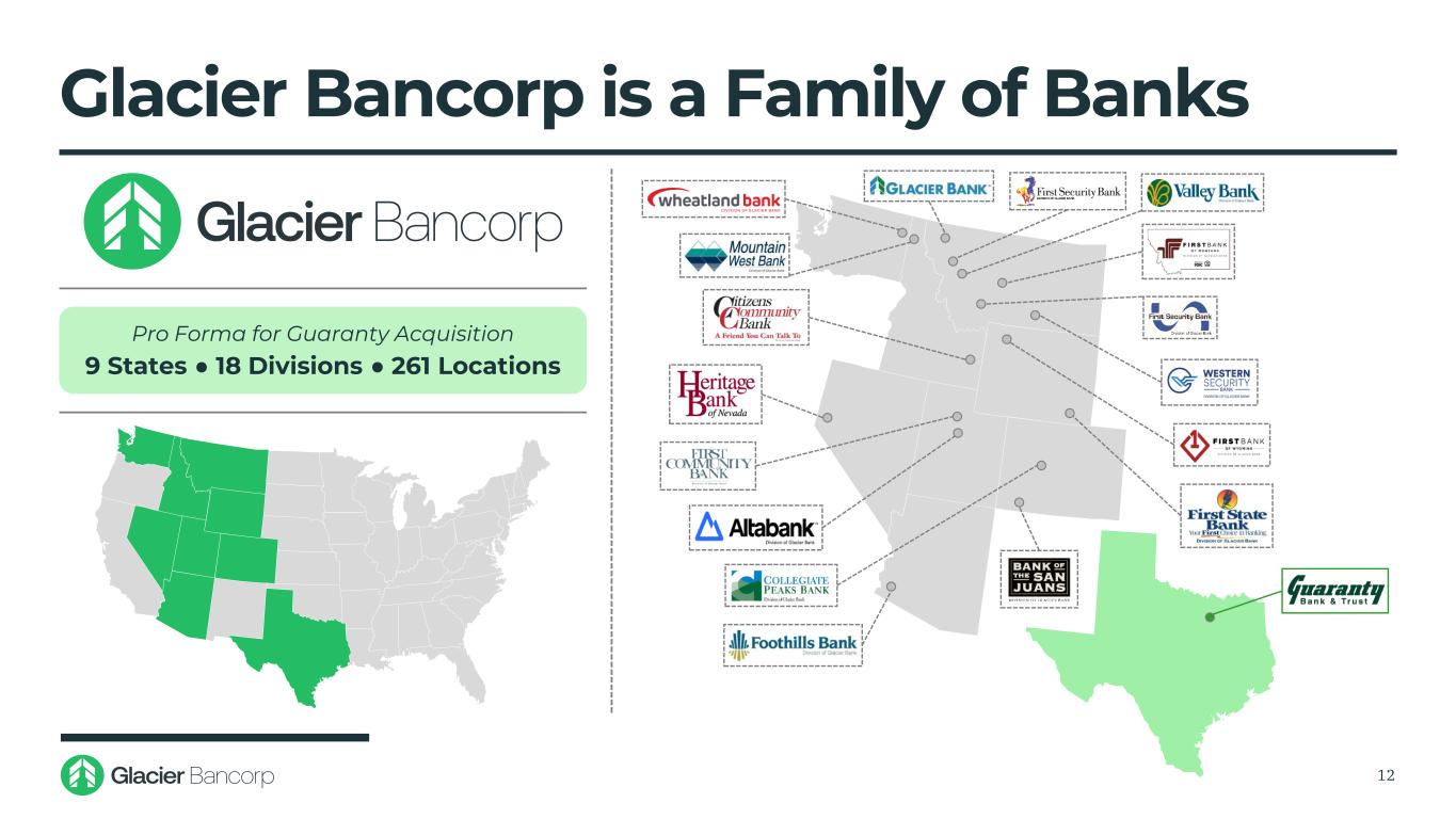Glacier Bancorp is a Family of Banks 12 Pro Forma for Guaranty Acquisition 9 States ● 18 Divisions ● 261 Locations
