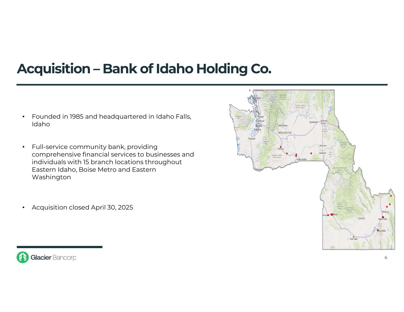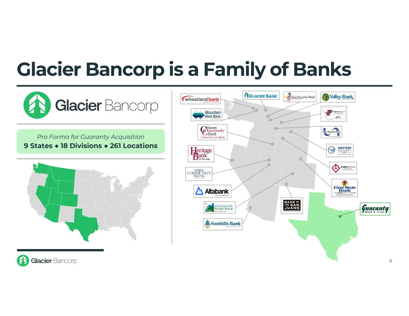 Glacier Bancorp is a Family of Banks 5 Pro Forma for Guaranty Acquisition 9 States ● 18 Divisions ● 261 Locations