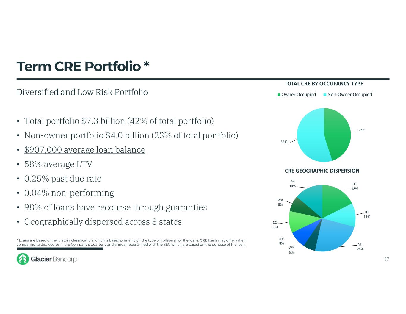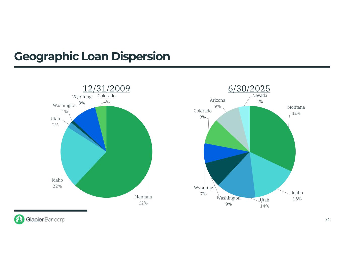 Montana 62% Idaho 22% Utah 2% Washington 1% Wyoming 9% Colorado 4% 12/31/2009 Montana 32% Idaho 16%Utah 14% Washington 9% Wyoming 7% Colorado 9% Arizona 9% Nevada 4% 6/30/2025 Geographic Loan Dispersion 36