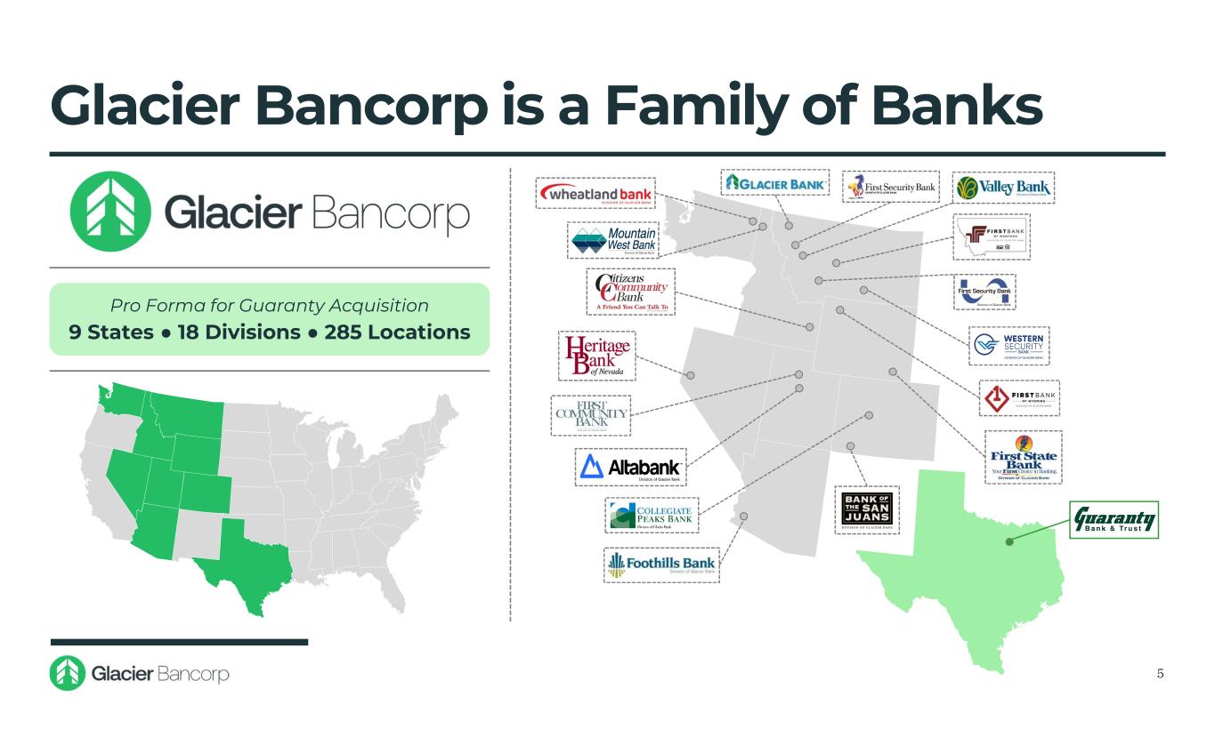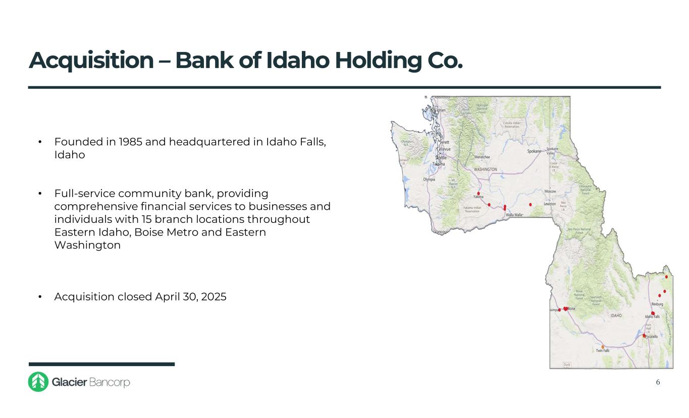 Glacier Bancorp is a Family of Banks 5 Pro Forma for Guaranty Acquisition 9 States ● 18 Divisions ● 285 Locations