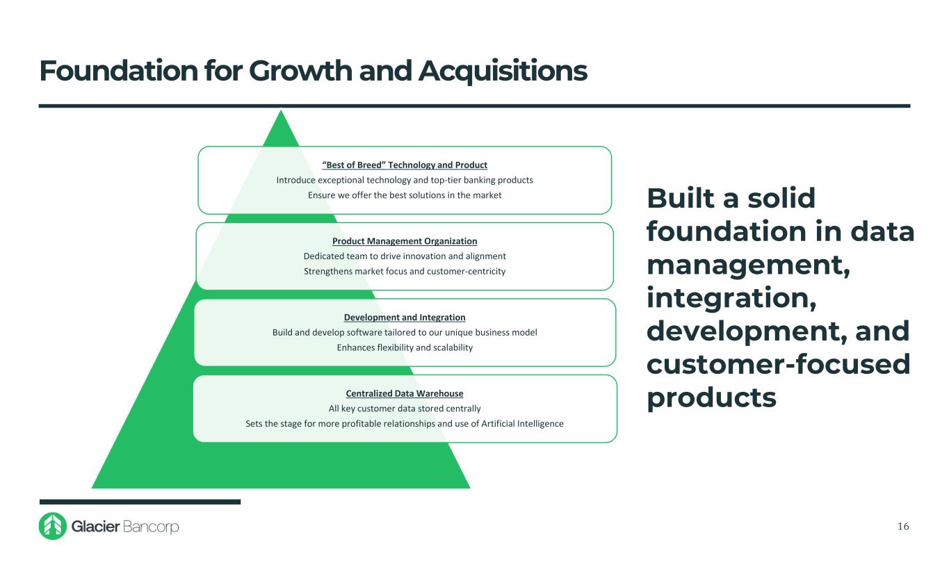 GBCI Is Prepared for Expected M&A Acceleration Capital Team Technology and Product Investments Reputation –with Regulators and Sellers Defined Playbook that Works Disciplined M&A Approach Attractive Model 15