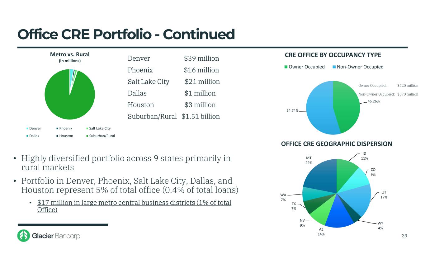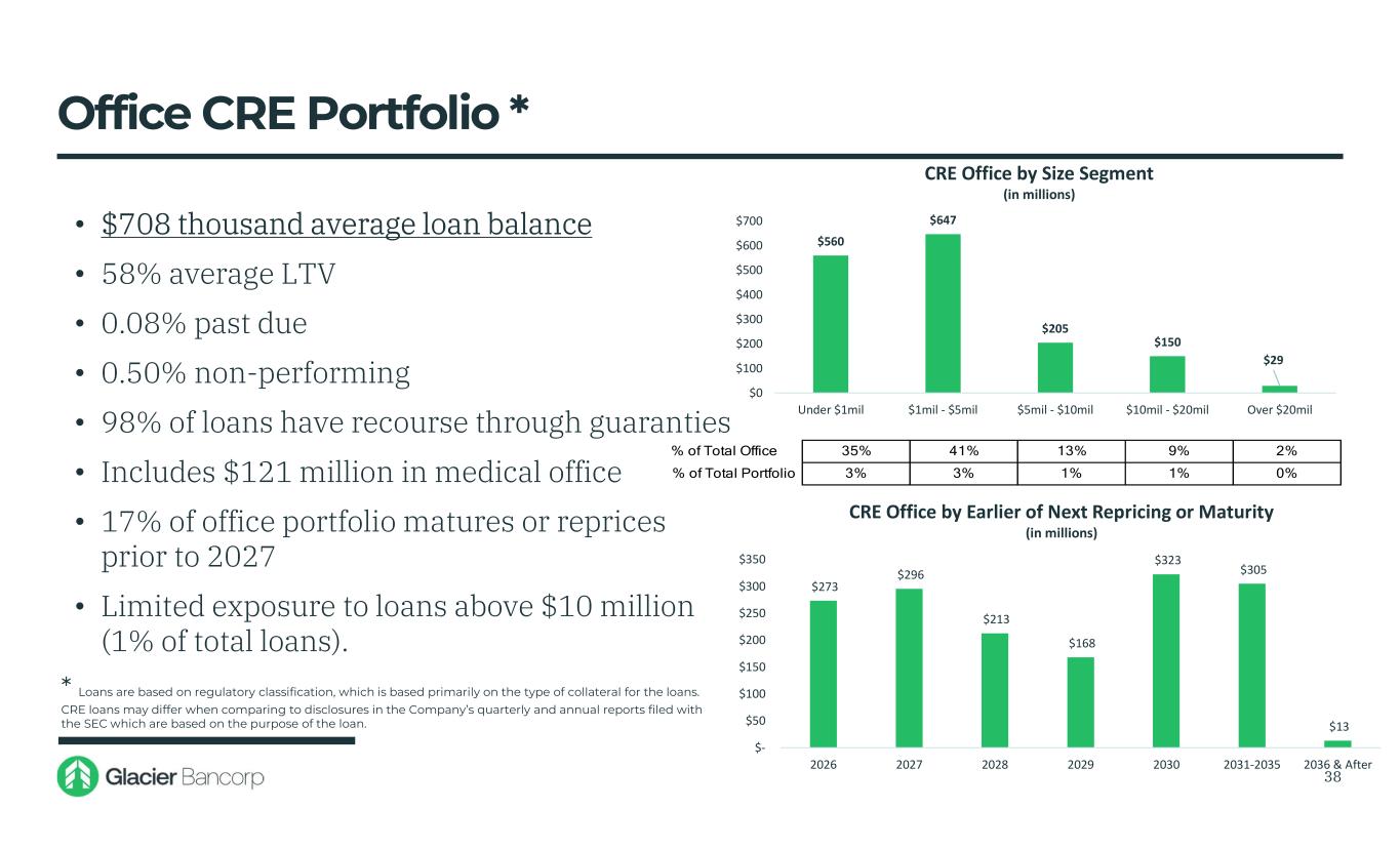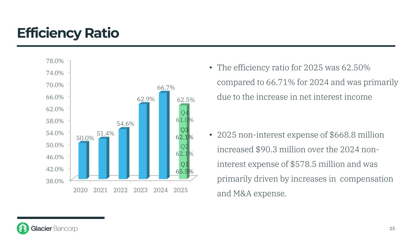 Forward-Looking Statements This presentation contains forward-looking statements within the meaning of the Private Securities Litigation Reform Act of 1995. These forward-looking statements include, but are not limited to, statements about the Company’s plans, objectives, expectations and intentions that are not historical facts, and other statements identified by words such as “expects,” “anticipates,” “will,” “intends,” “plans,” “believes,” “should,” “projects,” “seeks,” “estimates” or other comparable words or phrases of a future or forward-looking nature. These forward-looking statements are based on current beliefs and expectations of management and are inherently subject to significant business, economic and competitive uncertainties and contingencies, many of which are beyond the Company’s control. In addition, these forward-looking statements are based on assumptions that are subject to change. The following factors, among others, could cause actual results to differ materially from the anticipated results (express or implied) or other expectations in the forward-looking statements: 1) Risks associated with lending and potential adverse changes in the credit quality of the Company’s loan portfolio; 2) Changes in monetary and fiscal policies, including interest rate policies of the Federal Reserve Board, which could adversely affect the Company’s net interest income and margin, the fair value of its financial instruments, profitability, and stockholders’ equity; 3) Legislative or regulatory changes, including the possibility of increases in FDIC insurance rates and assessments, changes in the review and regulation of bank mergers, or increases or changes in banking and consumer protection regulations, that may adversely affect the Company’s business and strategies; 4) Risks related to overall economic conditions, including the impact of a potential government shutdown, economy of an uncertain interest rate environment, inflationary pressures, recently passed legislation and the potential for significant additional changes in economic and trade policies in the current administration; 5) Risks to the Company’s business and the business of the Company’s customers arising from current or future tariffs or other trade restrictions, labor or supply chain issues, change in labor force, or geopolitical instability, including the wars in Ukraine, conflicts in the Middle East, and potential for future conflicts or disruptions in other parts of the world; 6) Risks associated with the Company’s ability to negotiate, complete, and successfully integrate acquisitions; 7) Costs or difficulties related to the completion and integration of future or recently completed acquisitions; 8) Impairment of the goodwill recorded by the Company in connection with acquisitions, which may have an adverse impact on earnings and capital; 9) Reduction in demand for banking products and services, whether as a result of changes in customer behavior, economic conditions, banking environment, or competition; 10) Deterioration of the reputation of banks and the financial services industry, which could adversely affect the Company's ability to obtain and maintain customers; 11) Changes in the competitive landscape, including as may result from new market entrants, additional competition from internet-based financial institutions operating nationally, or further consolidation in the financial services industry, resulting in increased competition, including the creation of larger competitors with greater financial resources; 12) Risks presented by public stock market volatility, which could adversely affect the market price of the Company’s common stock and the ability to raise additional capital or grow through acquisitions; 13) Risks associated with dependence on the Chief Executive Officer, the senior management team and the Presidents of Glacier Bank’s divisions; 14) Material failure, potential interruption or breach in security of the Company’s systems or changes in technology which could expose the Company to cybersecurity risks, fraud, system failures, or direct liabilities; 15) Risks related to natural disasters, including droughts, fires, floods, earthquakes, pandemics, and other unexpected events; 16) Success in managing risks involved in any of the foregoing; and 17) Effects of any reputational damage to the Company resulting from any of the foregoing. 2