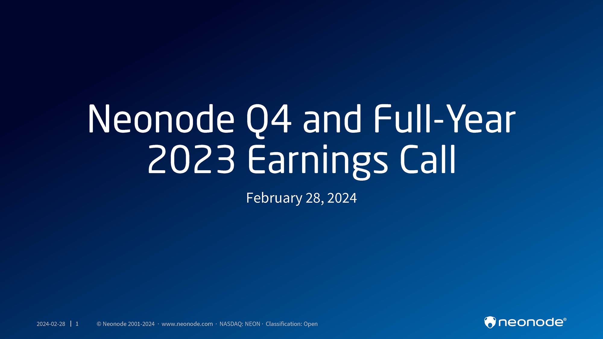 2024 - 02 - 27 1 © Neonode 2001 - 2024 · www.neonode.com · NASDAQ: NEON · Classification : Open Neonode Q4 and Full - Year 2023 Earnings Call February 28, 2024