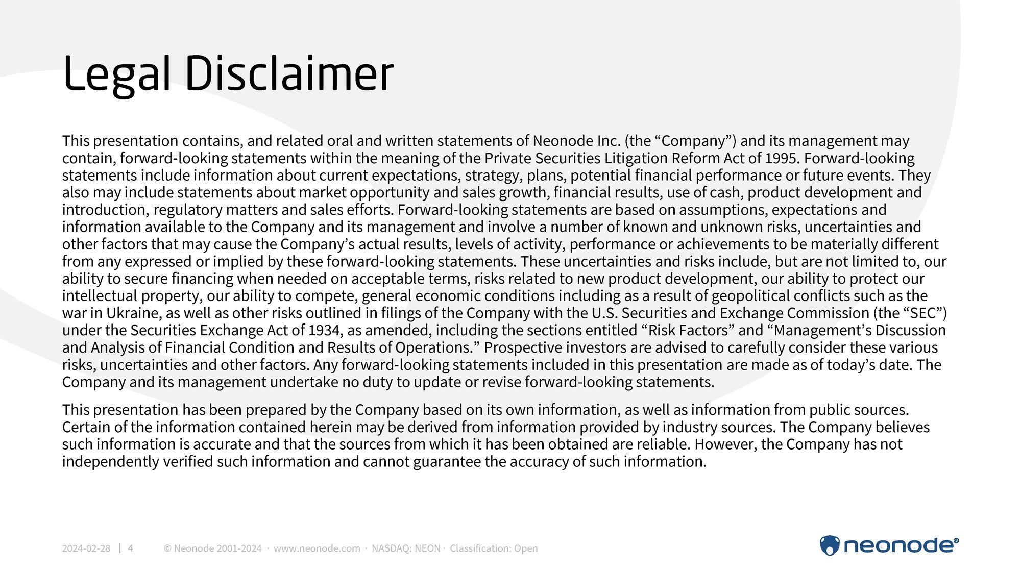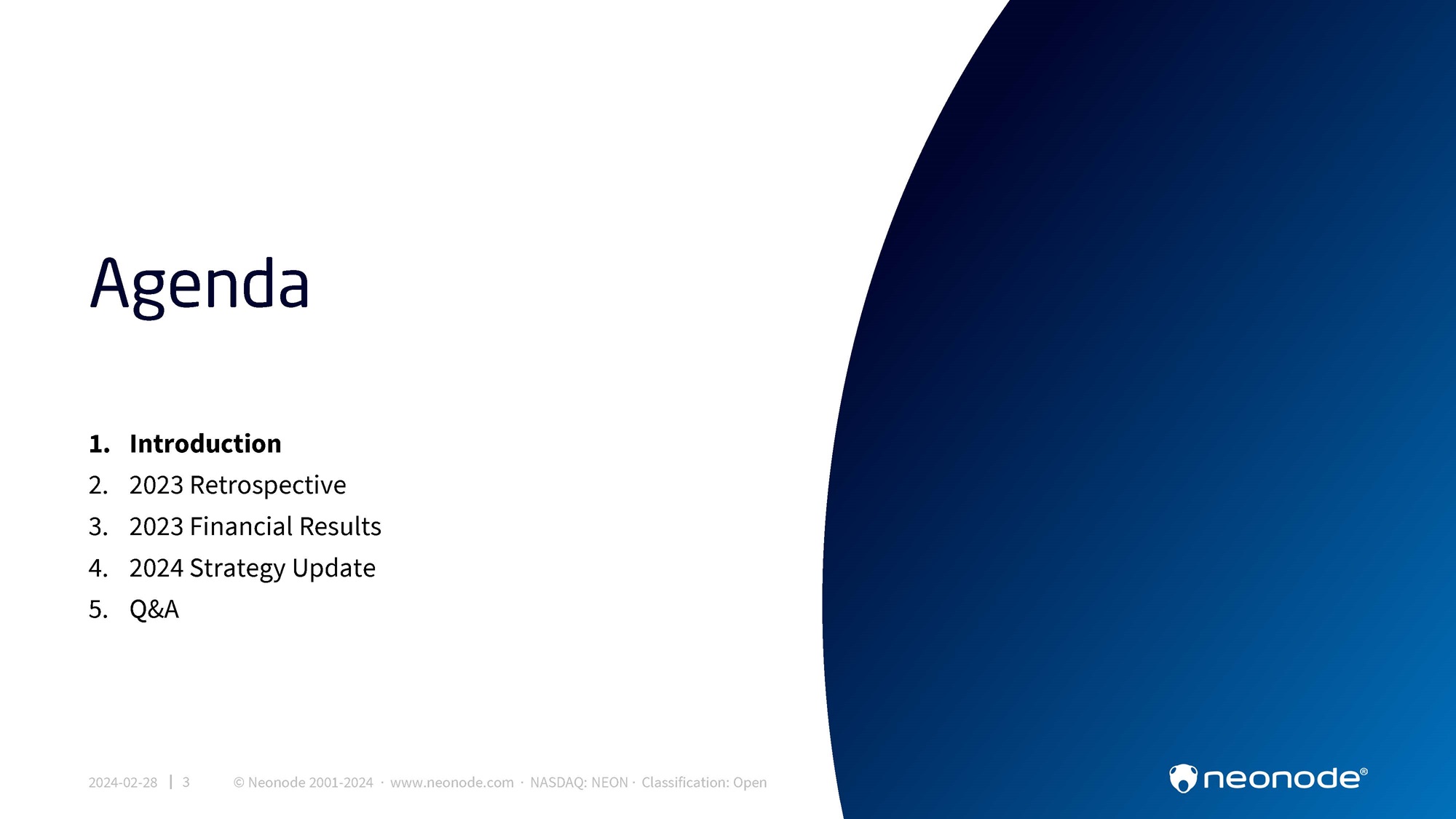 2024 - 02 - 27 3 © Neonode 2001 - 2024 · www.neonode.com · NASDAQ: NEON · Classification : Open Agenda 1. Introduction 2. 2023 Retrospective 3. 2023 Financial Results 4. 2024 Strategy Update 5. Q&A