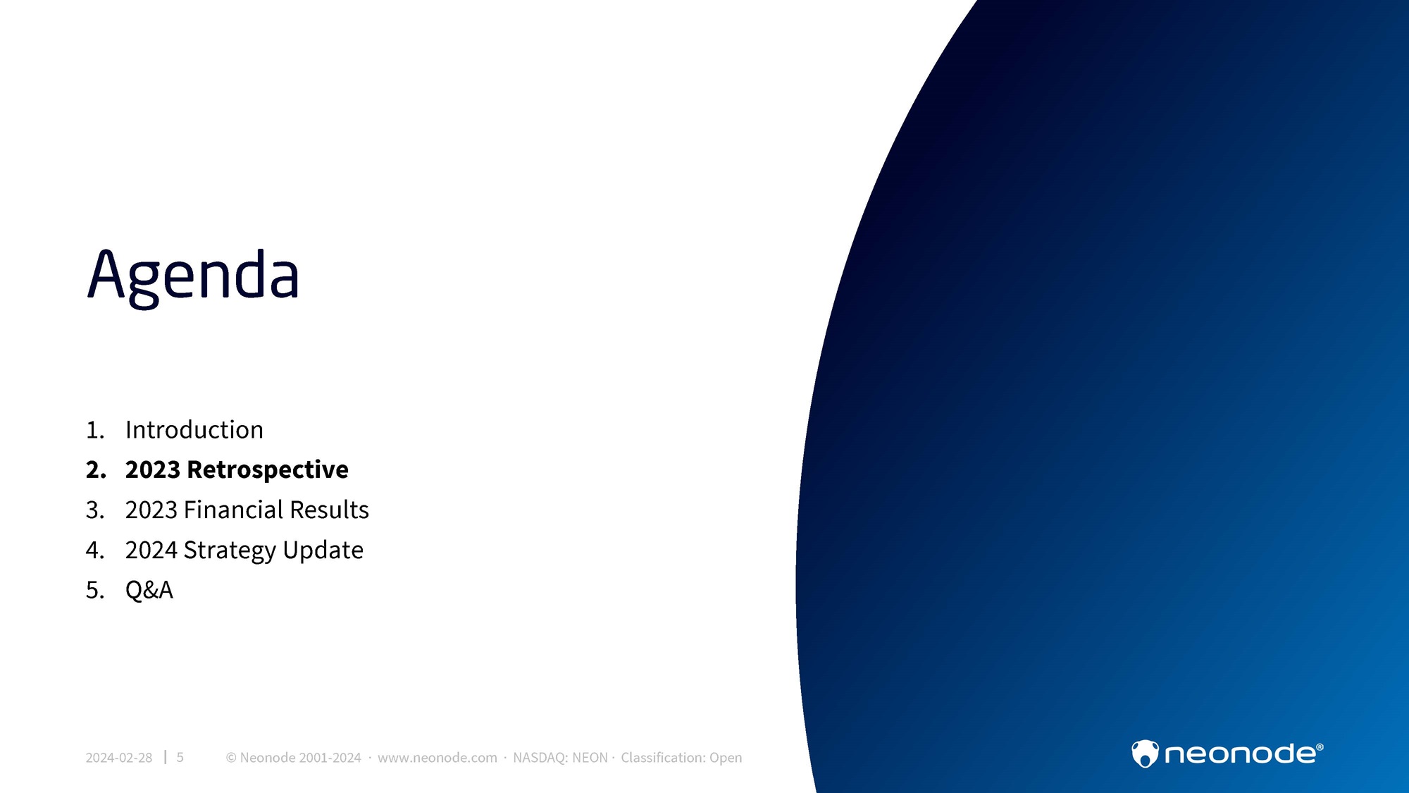 2024 - 02 - 27 5 © Neonode 2001 - 2024 · www.neonode.com · NASDAQ: NEON · Classification : Open Agenda 1. Introduction 2. 2023 Retrospective 3. 2023 Financial Results 4. 2024 Strategy Update 5. Q&A