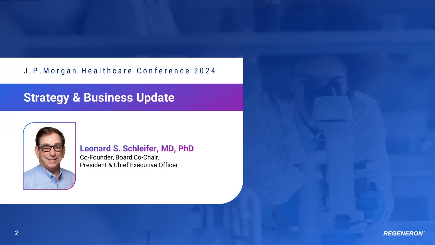 2 Strategy & Business Update J.P.Morgan Healthcare Conference 2024 Co - Founder, Board Co - Chair, President & Chief Executive Officer