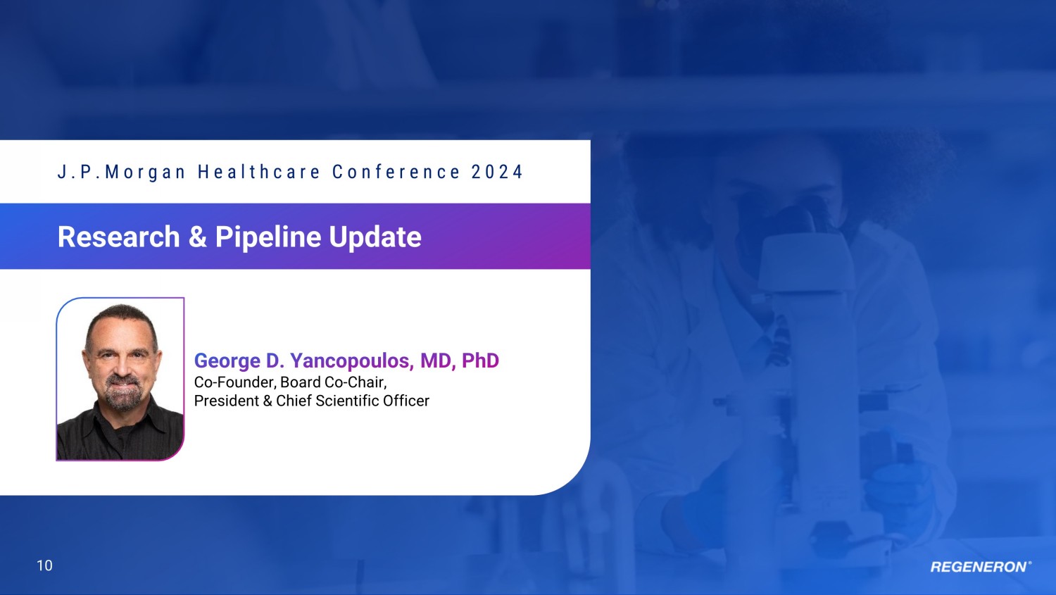 10 Research & Pipeline Update J.P.Morgan Healthcare Conference 2024 Co - Founder, Board Co - Chair, President & Chief Scientific Officer