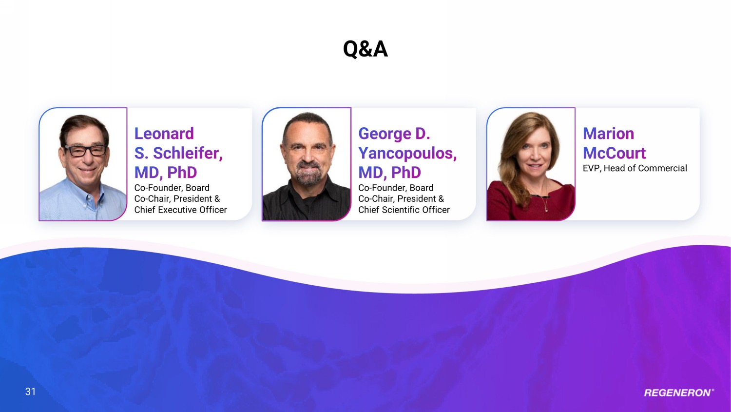 Co - Founder, Board Co - Chair, President & Chief Executive Officer EVP, Head of Commercial Co - Founder, Board Co - Chair, President & Chief Scientific Officer Q&A 31