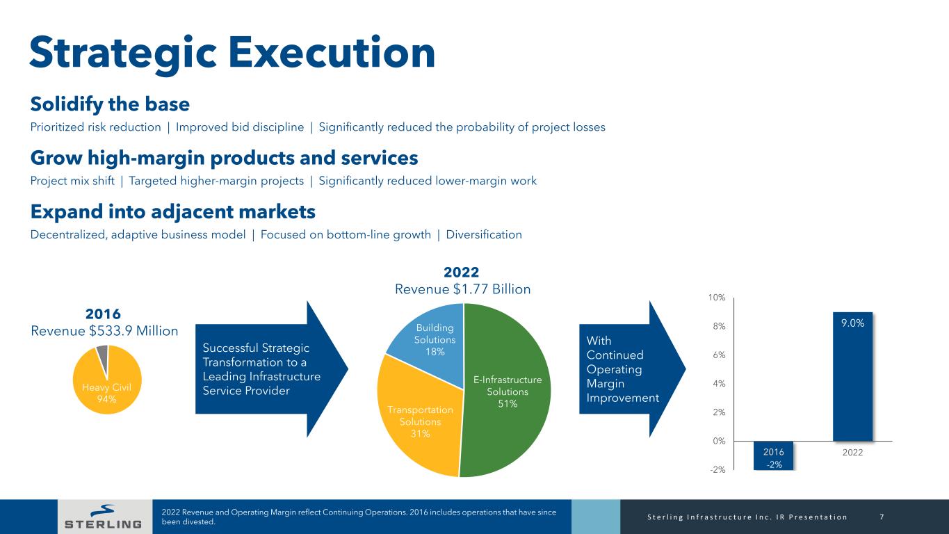 Strategic Transformation at a Glance S t e r l i n g I n f r a s t r u c t u r e I n c . I R P r e s e n t a t i o n 6