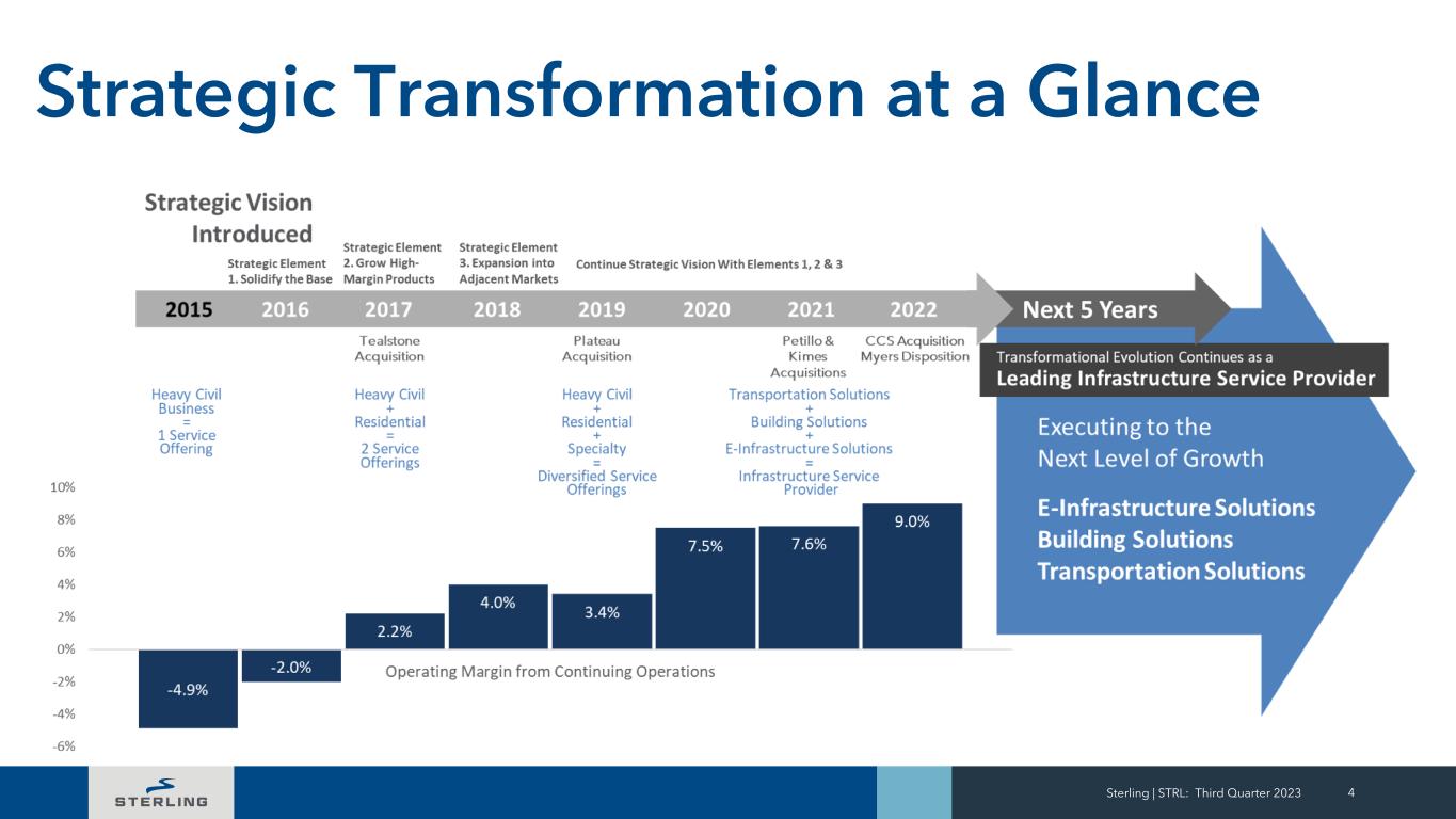 Sterling | STRL: Third Quarter 2023 4 Strategic Transformation at a Glance