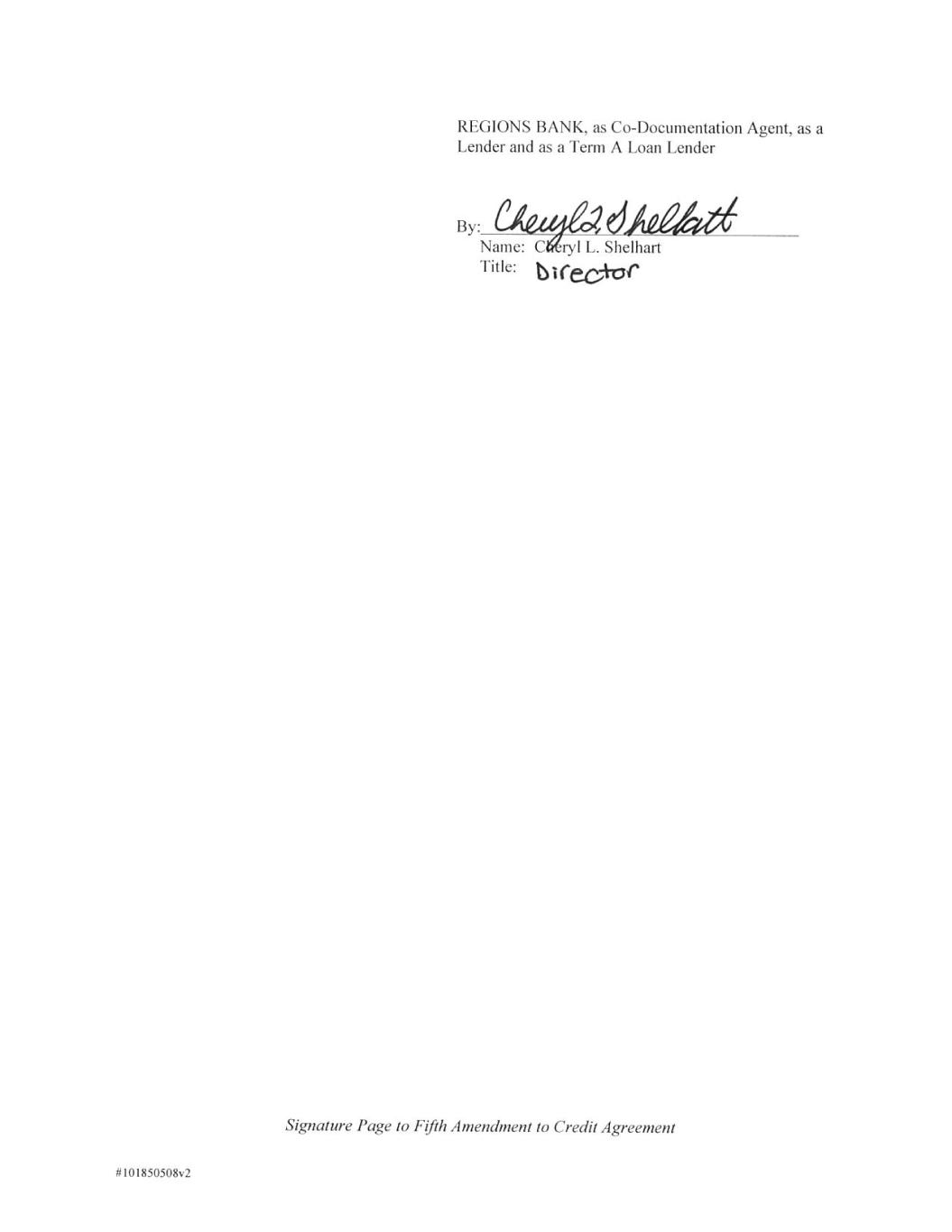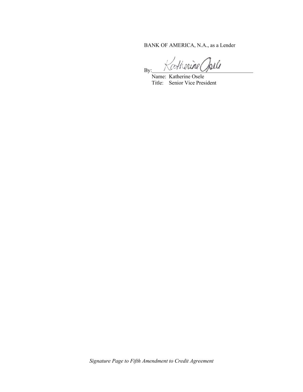 Signature Page to Fifth Amendment to Credit Agreement BANK OF AMERICA, N.A., as a Lender By: Name: Katherine Osele Title: Senior Vice President