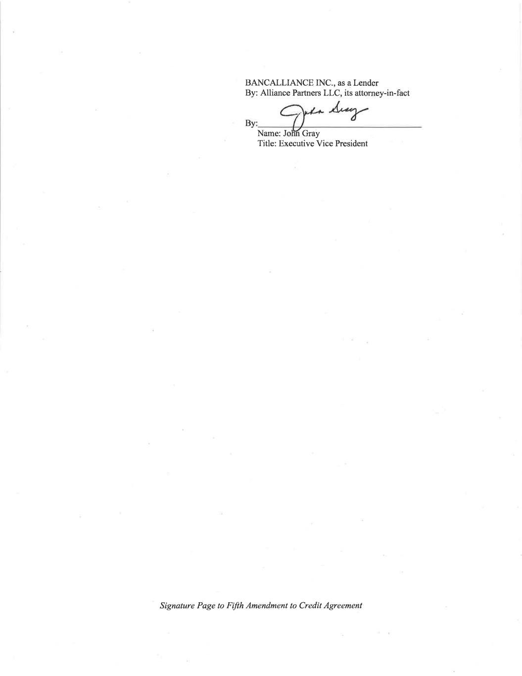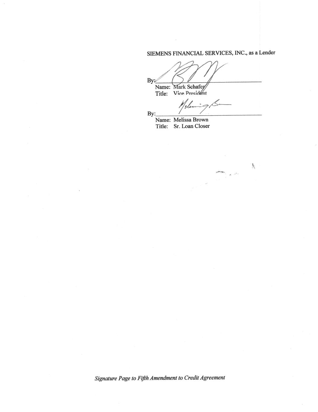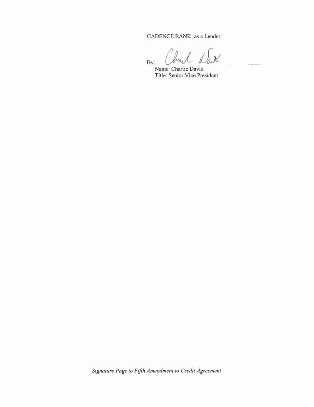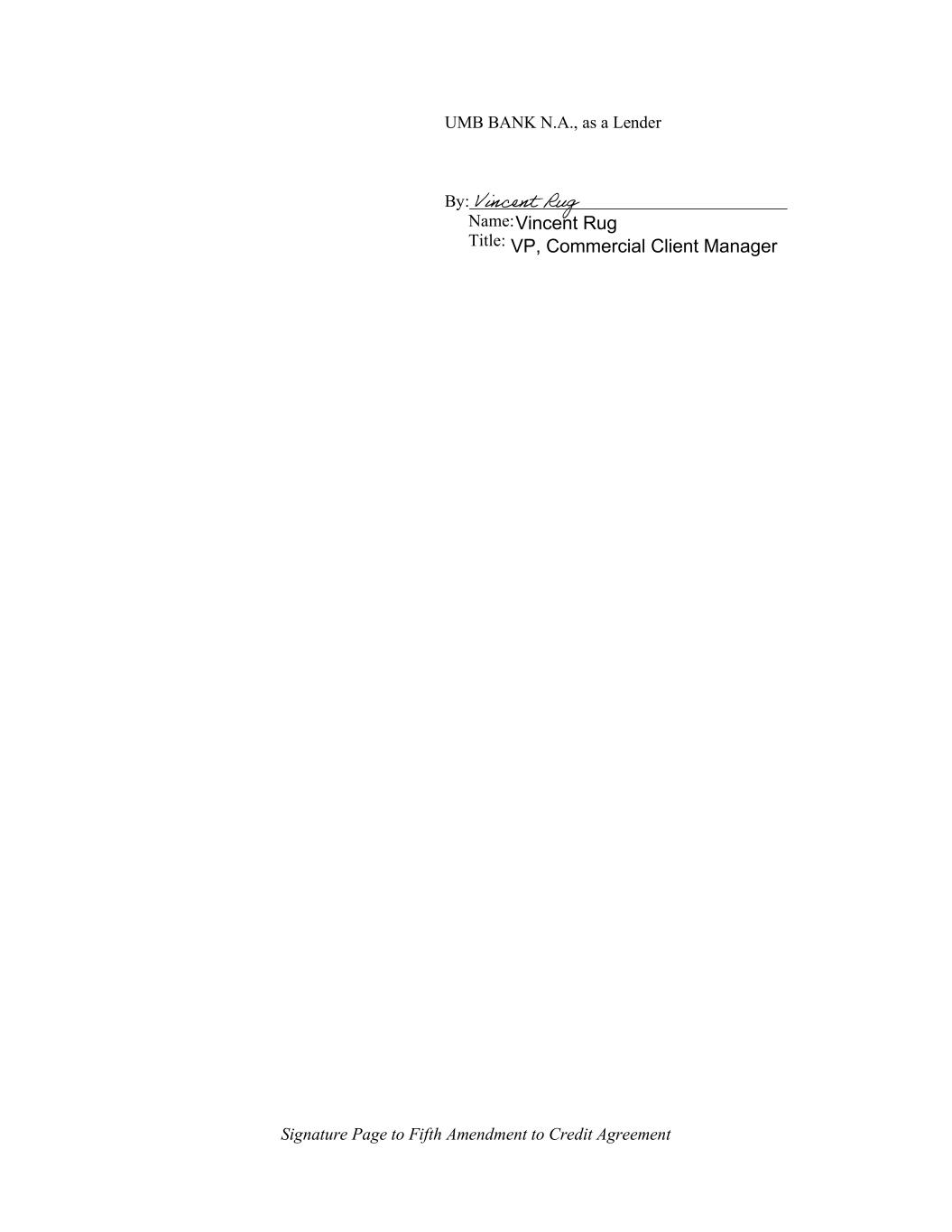 Signature Page to Fifth Amendment to Credit Agreement UMB BANK N.A., as a Lender By: Name: Title: Vincent Rug VP, Commercial Client Manager