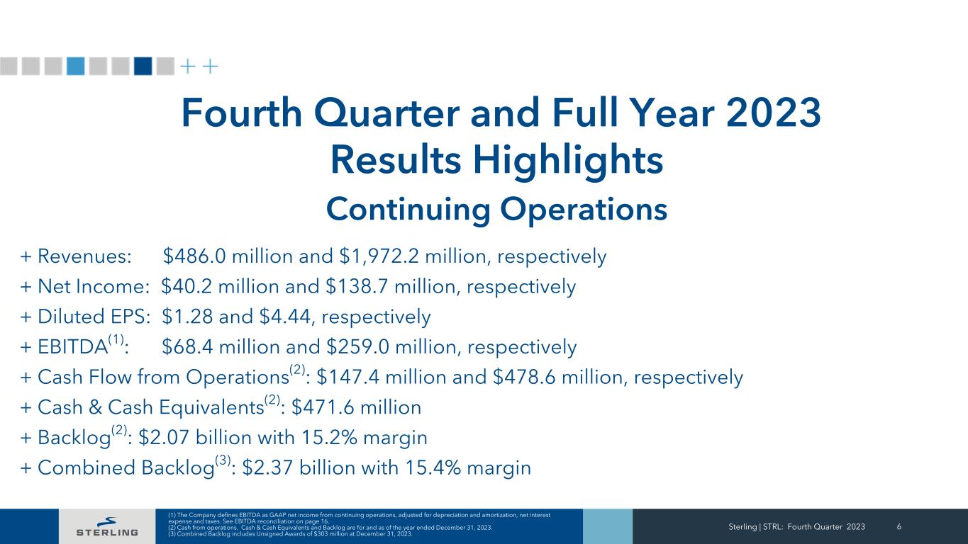 + Fourth Quarter 2023 Results Sterling | STRL: Fourth Quarter 2023 5