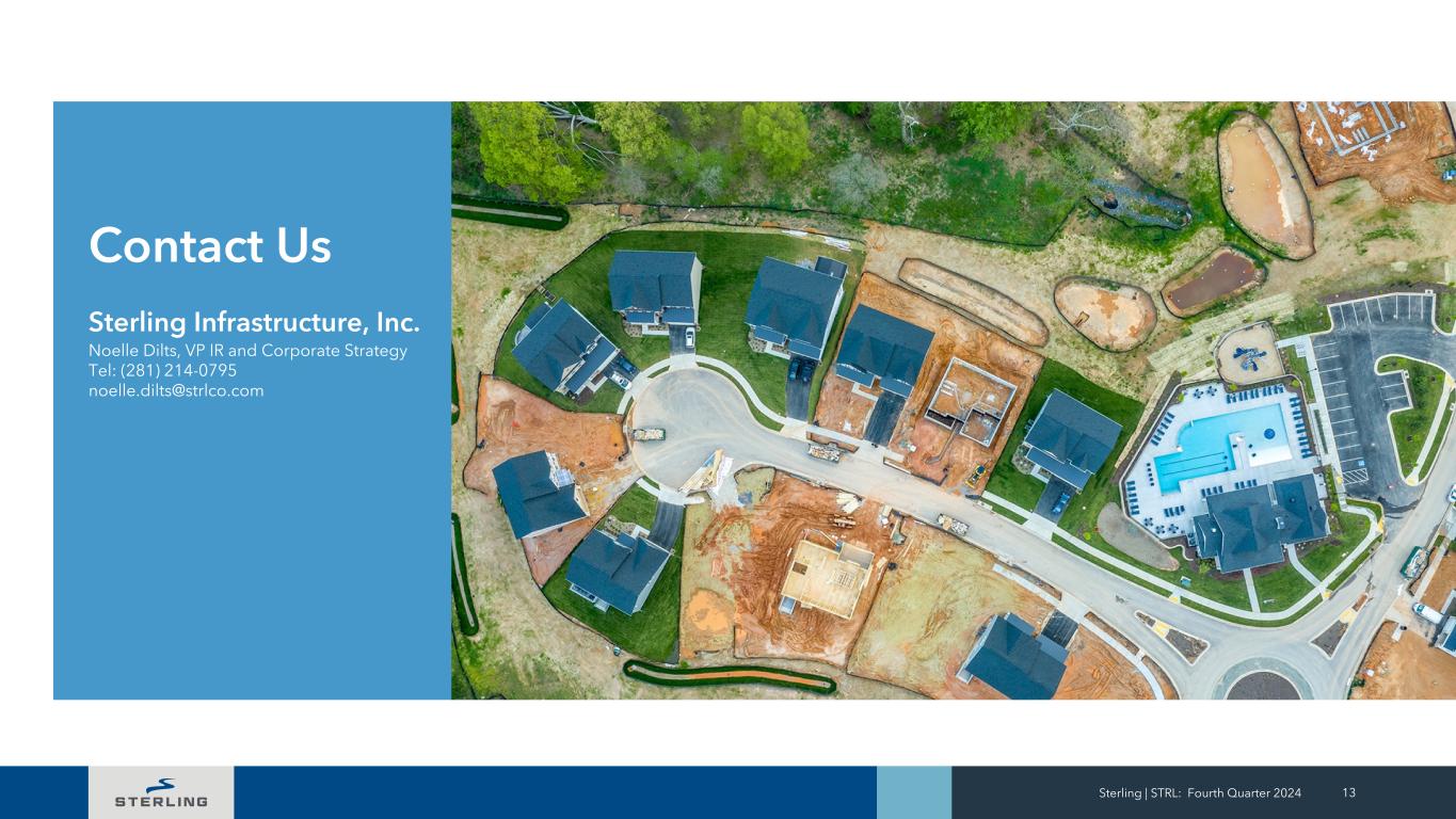 Sterling | STRL: Fourth Quarter 2024 13 Contact Us Sterling Infrastructure, Inc. Noelle Dilts, VP IR and Corporate Strategy Tel: (281) 214-0795 noelle.dilts@strlco.com