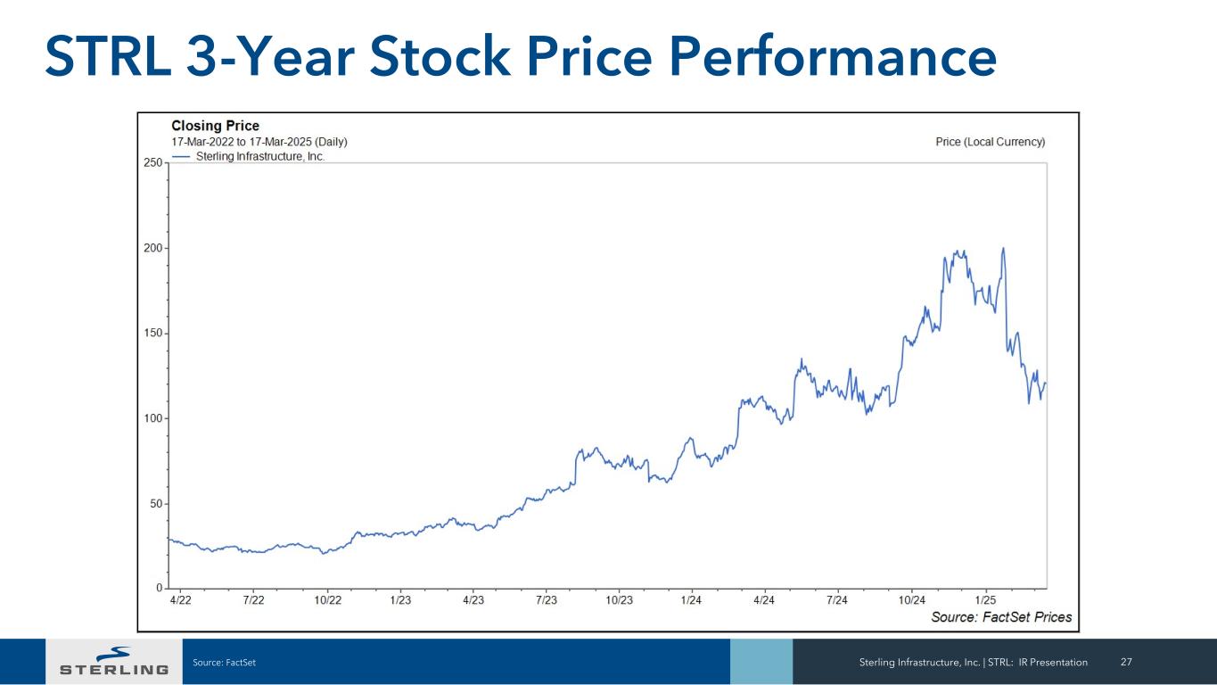 STRL 3-Year Stock Price Performance Source: FactSet Sterling Infrastructure, Inc. | STRL: IR Presentation 27