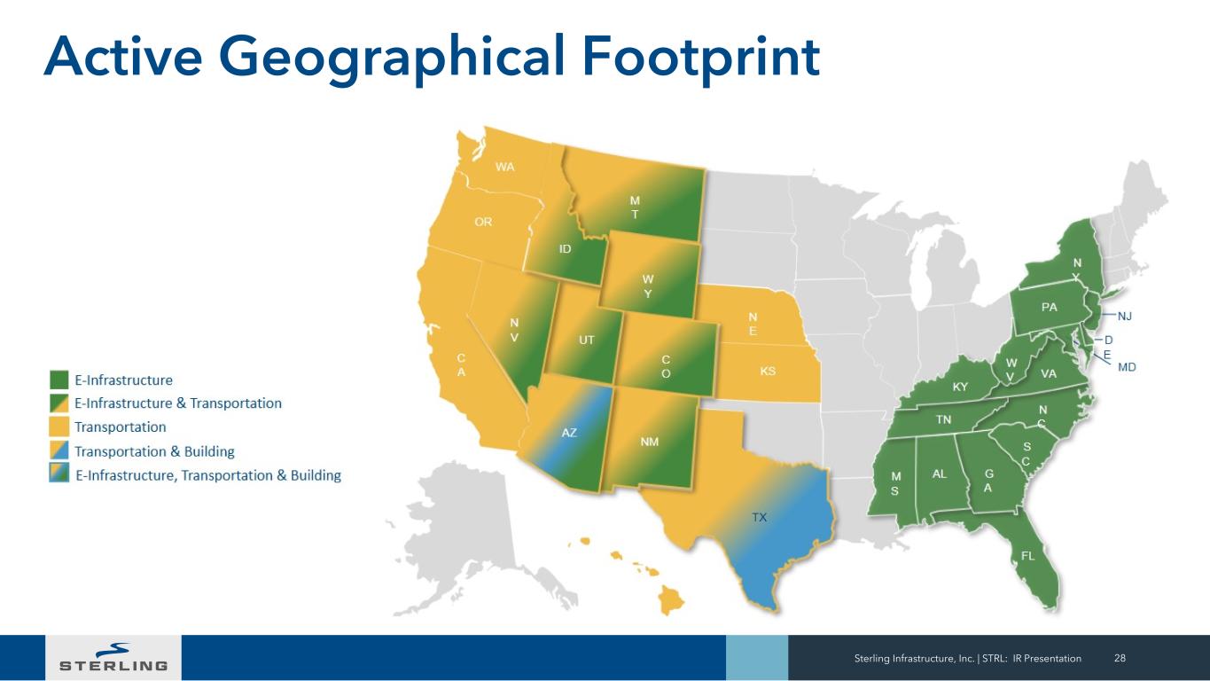 Active Geographical Footprint Sterling Infrastructure, Inc. | STRL: IR Presentation 28