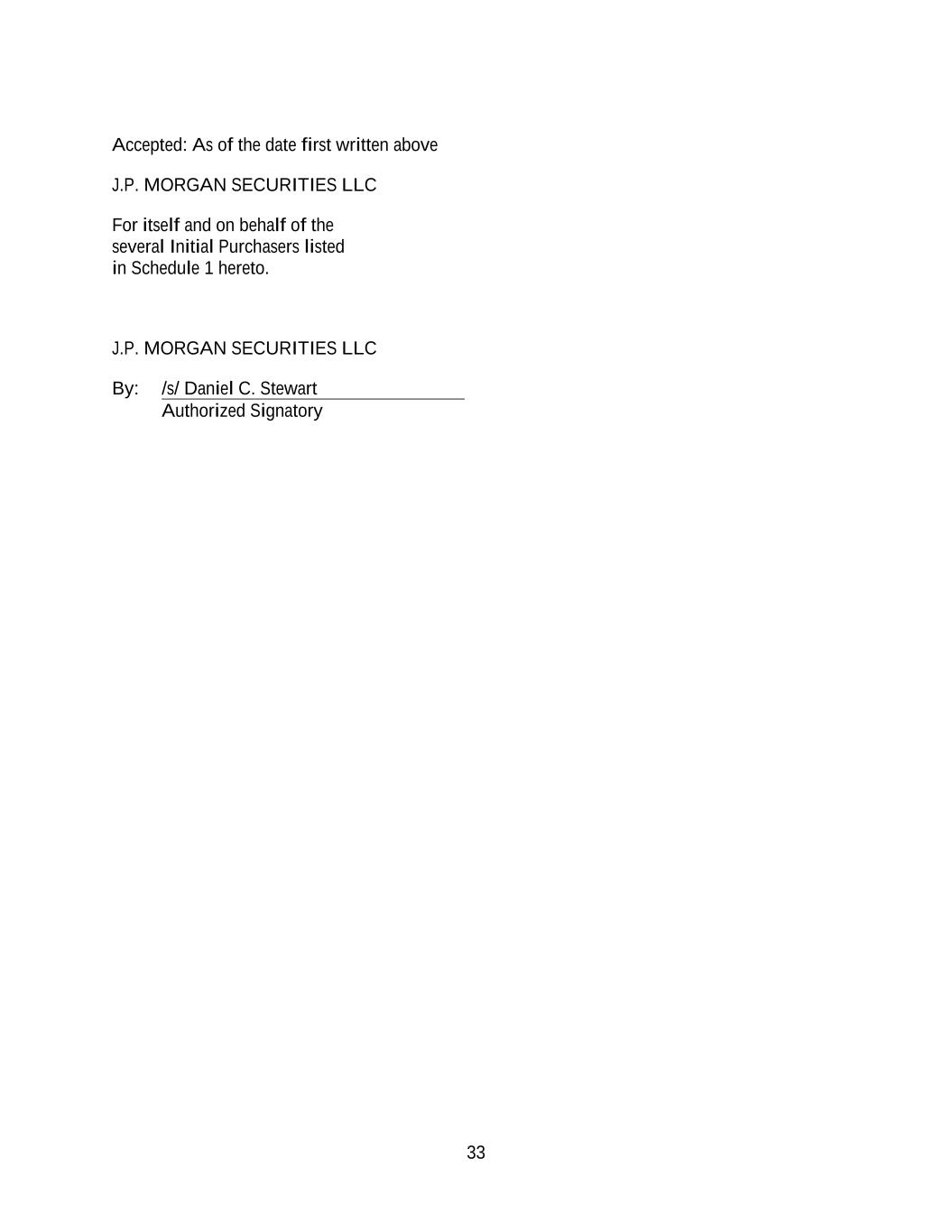33 Accepted: As of the date first written above J.P. MORGAN SECURITIES LLC For itself and on behalf of the several Initial Purchasers listed in Schedule 1 hereto. J.P. MORGAN SECURITIES LLC By: /s/ Daniel C. Stewart Authorized Signatory