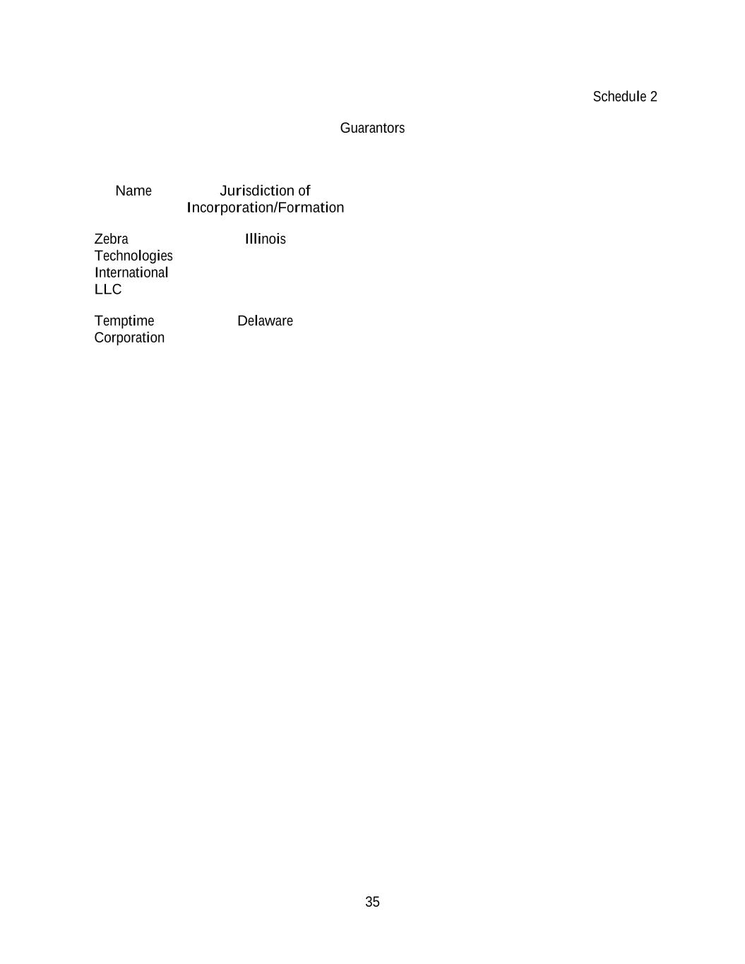 35 Schedule 2 Guarantors Name Jurisdiction of Incorporation/Formation Zebra Technologies International LLC Illinois Temptime Corporation Delaware