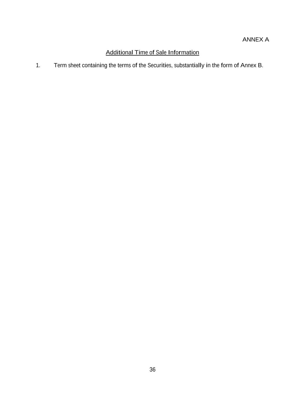 36 ANNEX A Additional Time of Sale Information 1. Term sheet containing the terms of the Securities, substantially in the form of Annex B.