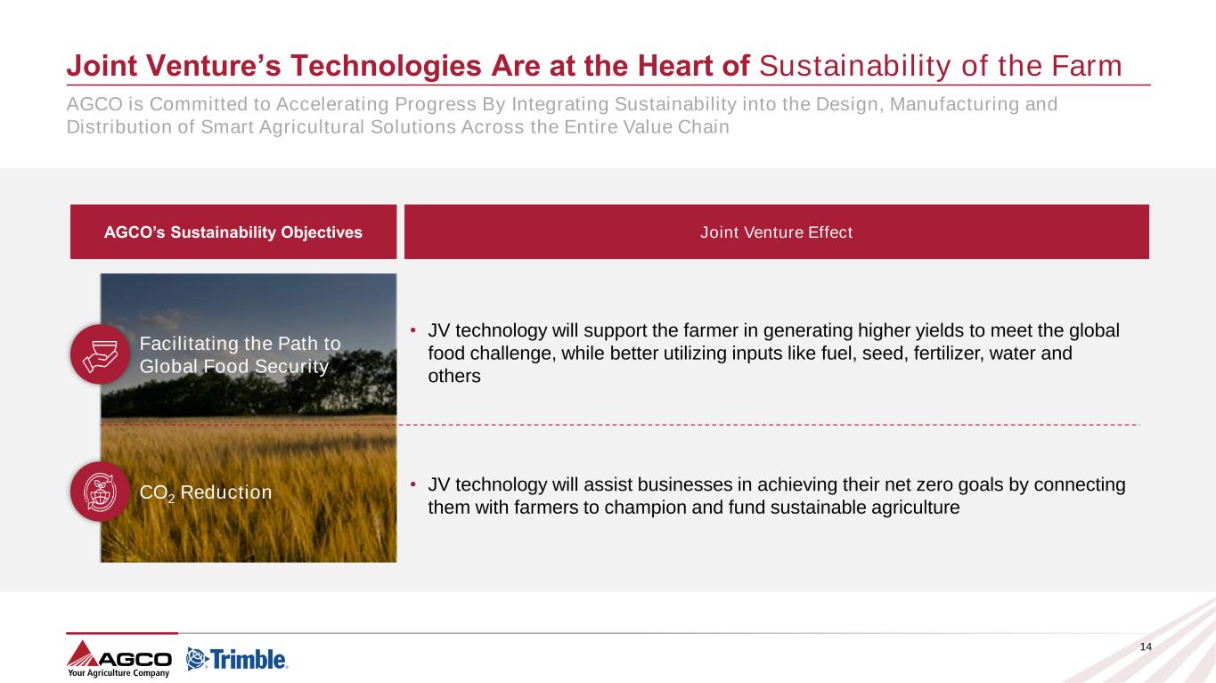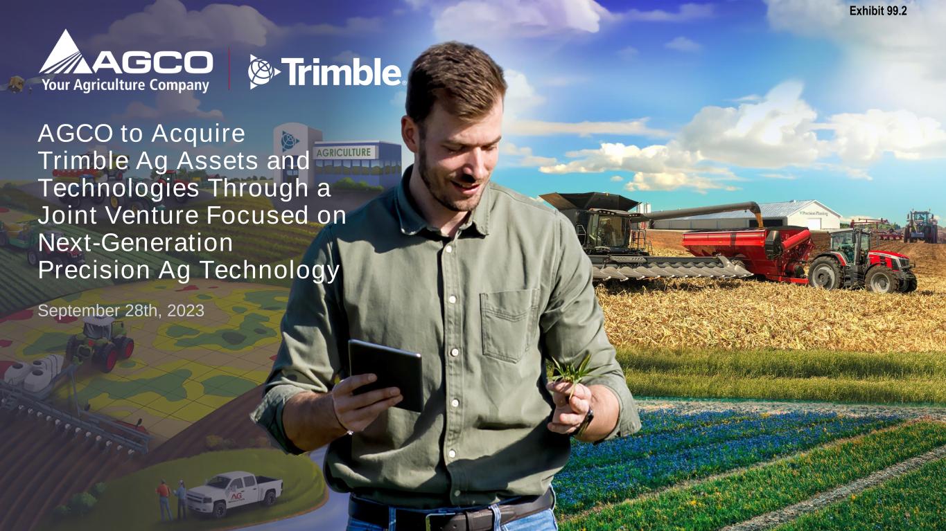 AGCO to Acquire Trimble Ag Assets and Technologies Through a Joint Venture Focused on Next-Generation Precision Ag Technology September 28th, 2023
