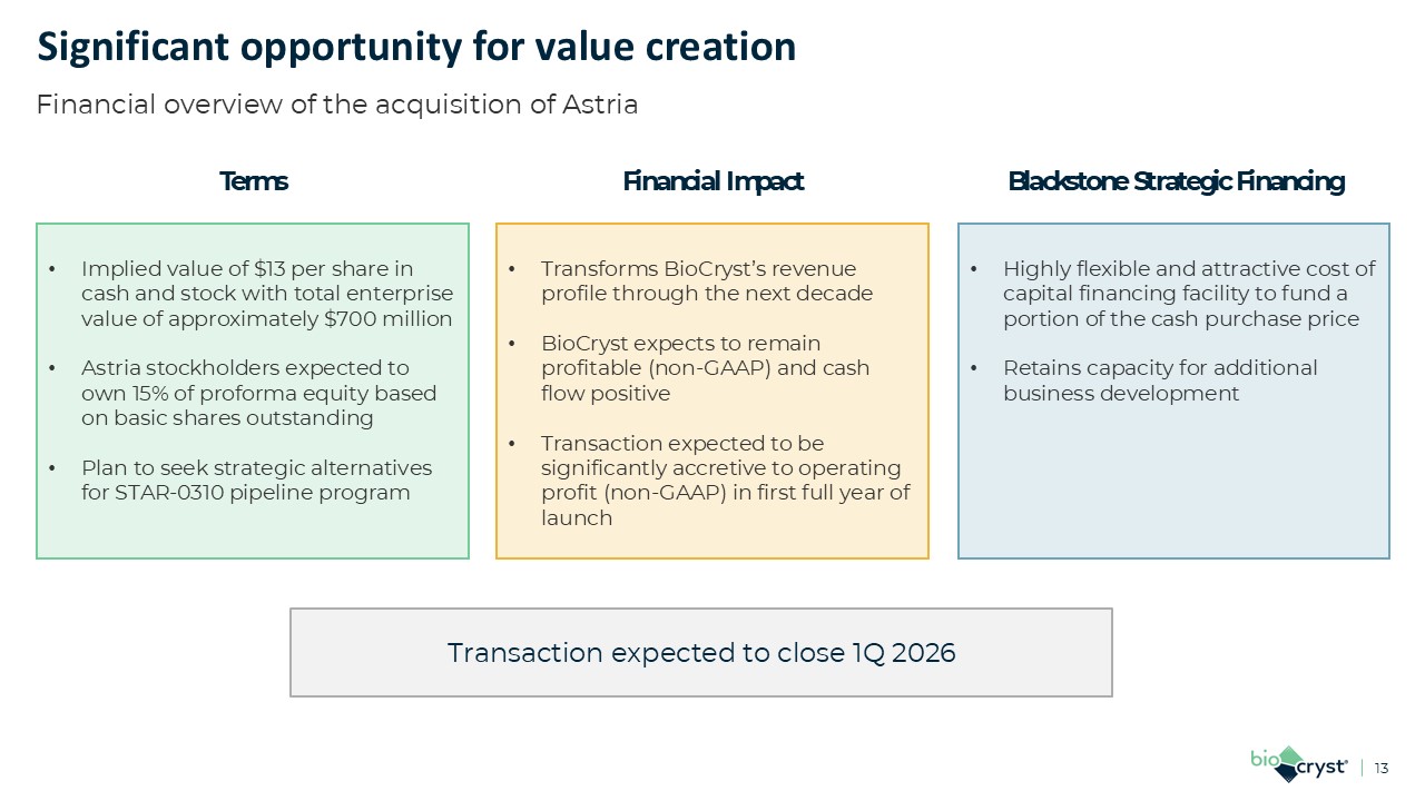 October 14, 2025  BioCryst to Acquire Astria Therapeutics