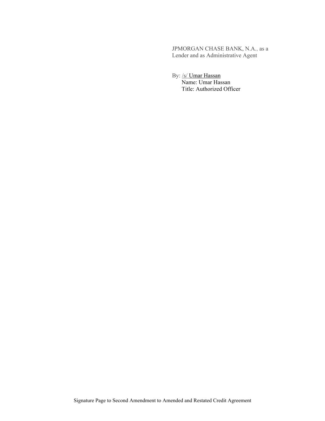 Signature Page to Second Amendment to Amended and Restated Credit Agreement JPMORGAN CHASE BANK, N.A., as a Lender and as Administrative Agent By: /s/ Umar Hassan Name: Umar Hassan Title: Authorized Officer