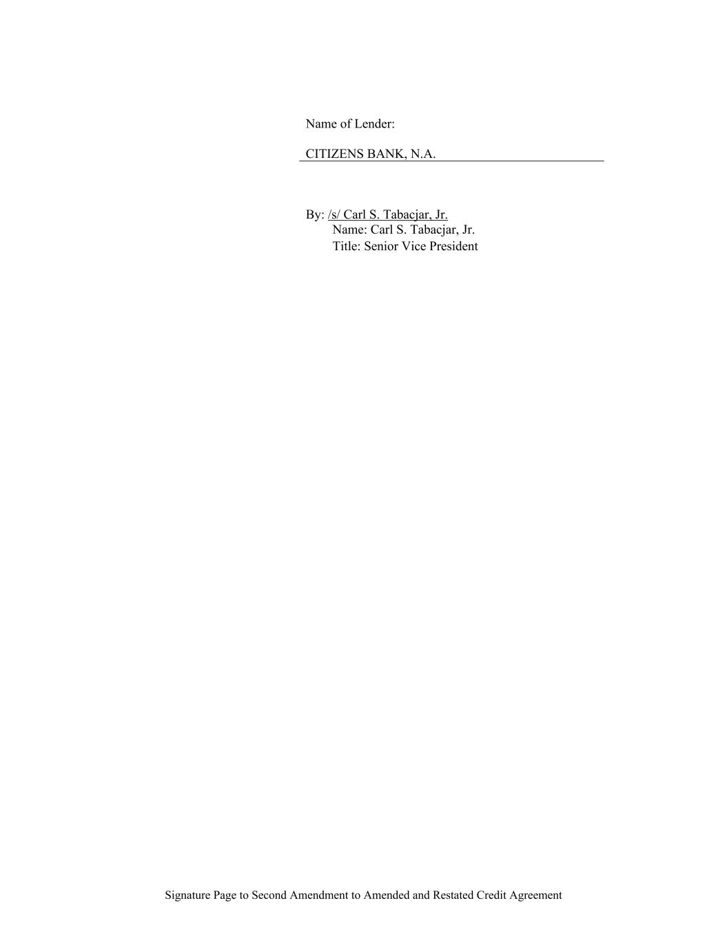 Signature Page to Second Amendment to Amended and Restated Credit Agreement Name of Lender: CITIZENS BANK, N.A. By: /s/ Carl S. Tabacjar, Jr. Name: Carl S. Tabacjar, Jr. Title: Senior Vice President