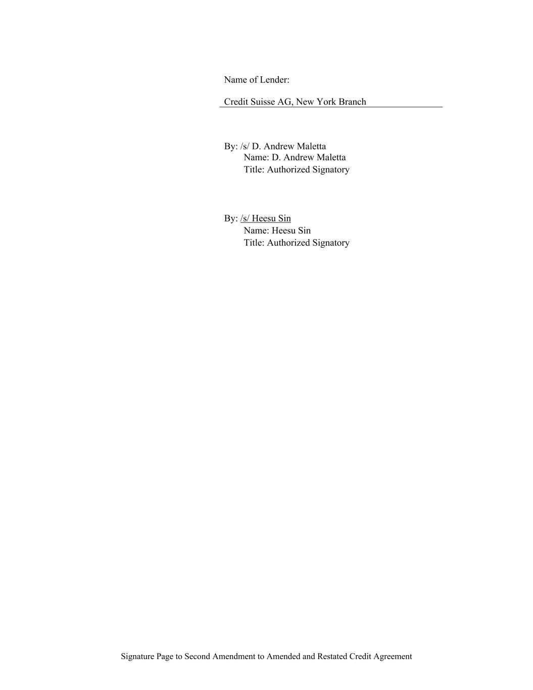 Signature Page to Second Amendment to Amended and Restated Credit Agreement Name of Lender: Credit Suisse AG, New York Branch By: /s/ D. Andrew Maletta Name: D. Andrew Maletta Title: Authorized Signatory By: /s/ Heesu Sin Name: Heesu Sin Title: Authorized Signatory