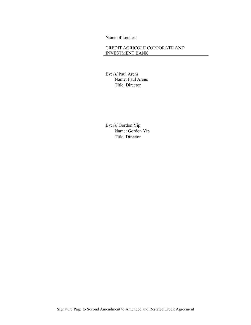 Signature Page to Second Amendment to Amended and Restated Credit Agreement Name of Lender: CREDIT AGRICOLE CORPORATE AND INVESTMENT BANK By: /s/ Paul Arens Name: Paul Arens Title: Director By: /s/ Gordon Yip Name: Gordon Yip Title: Director