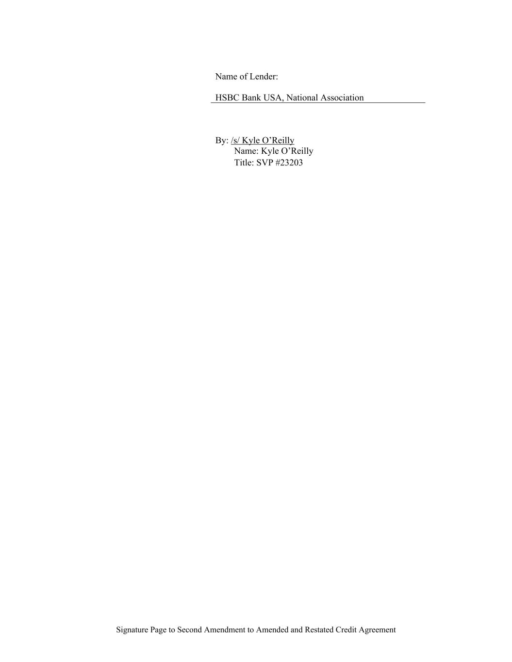 Signature Page to Second Amendment to Amended and Restated Credit Agreement Name of Lender: HSBC Bank USA, National Association By: /s/ Kyle O’Reilly Name: Kyle O’Reilly Title: SVP #23203