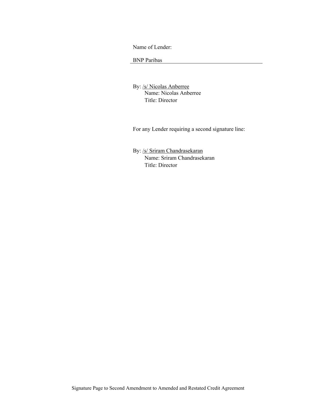 Signature Page to Second Amendment to Amended and Restated Credit Agreement Name of Lender: BNP Paribas By: /s/ Nicolas Anberree Name: Nicolas Anberree Title: Director For any Lender requiring a second signature line: By: /s/ Sriram Chandrasekaran Name: Sriram Chandrasekaran Title: Director